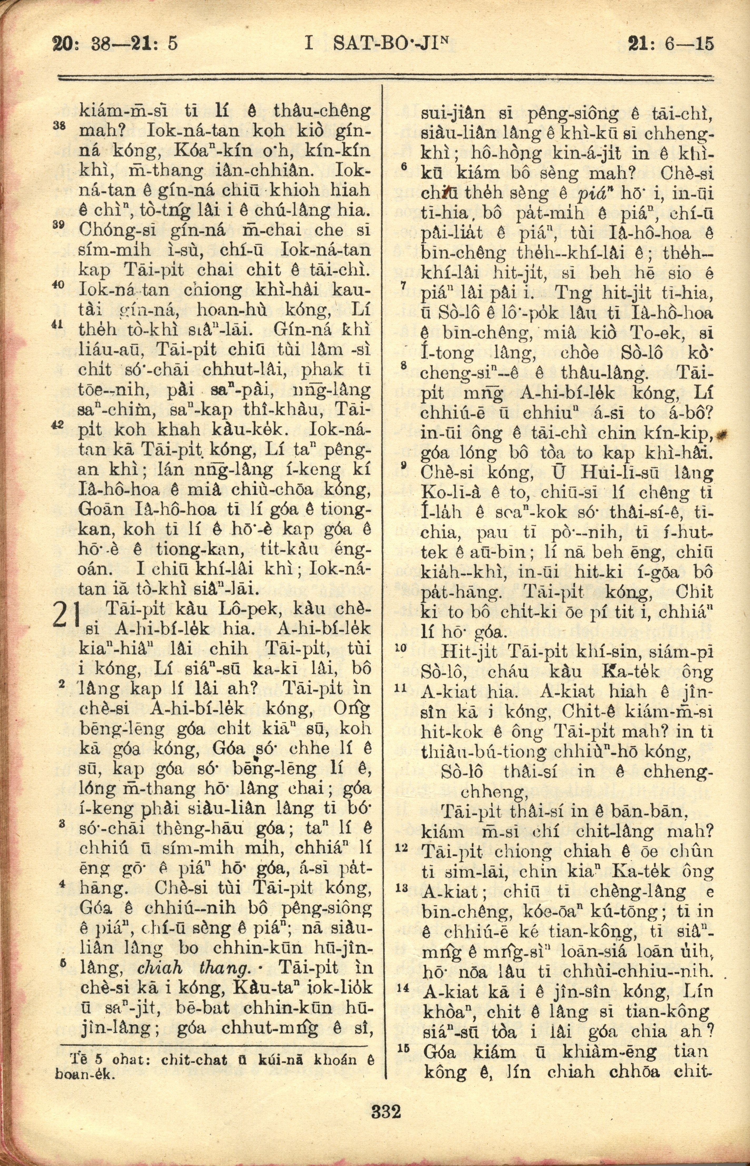 1957年巴克禮全羅台語聖經串珠版 撒母耳記上 20 章 38 節到 21 章 15 節