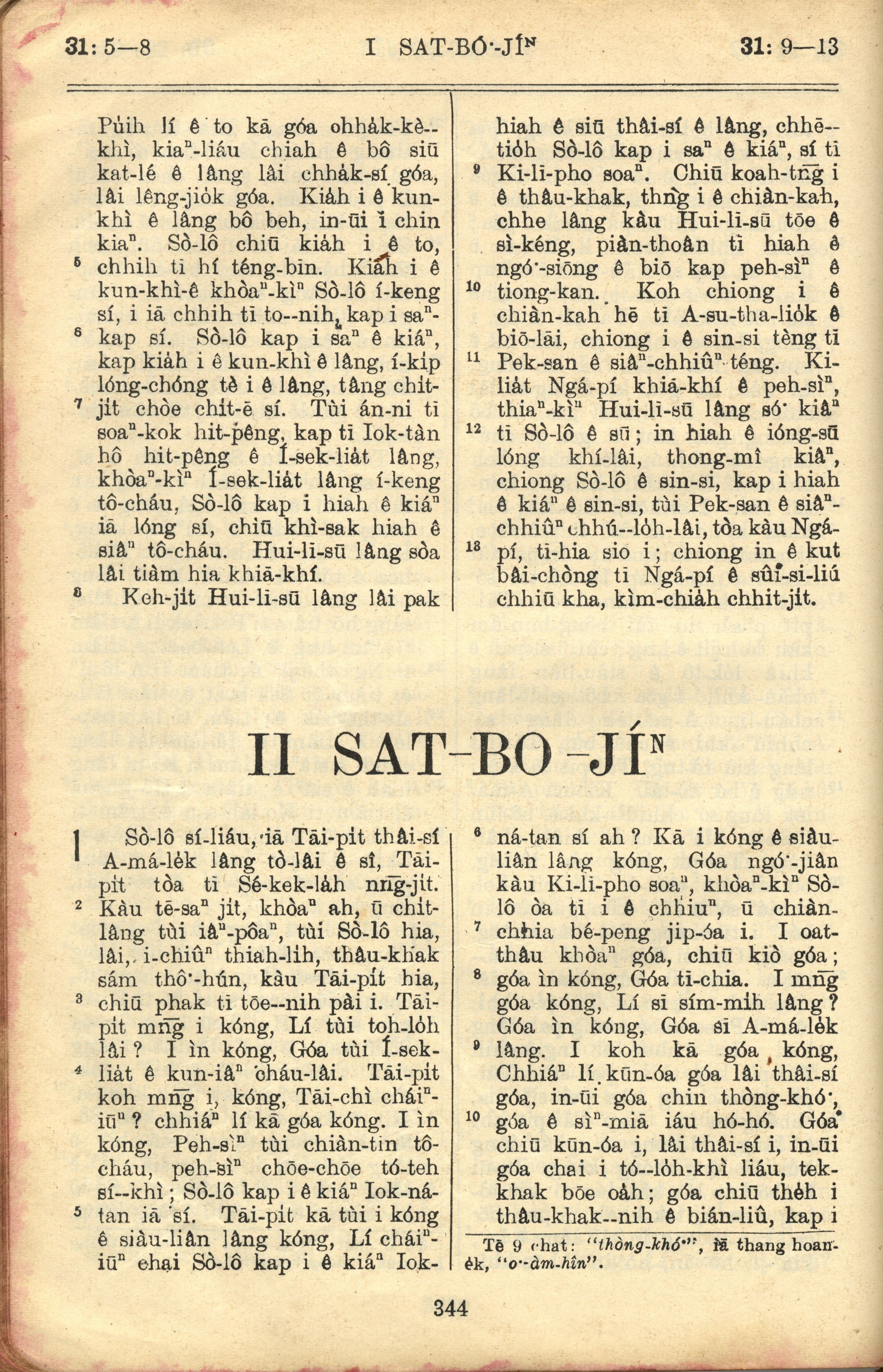 1957年巴克禮全羅台語聖經串珠版 撒母耳記上 31 章 5 節到 31 章 13 節