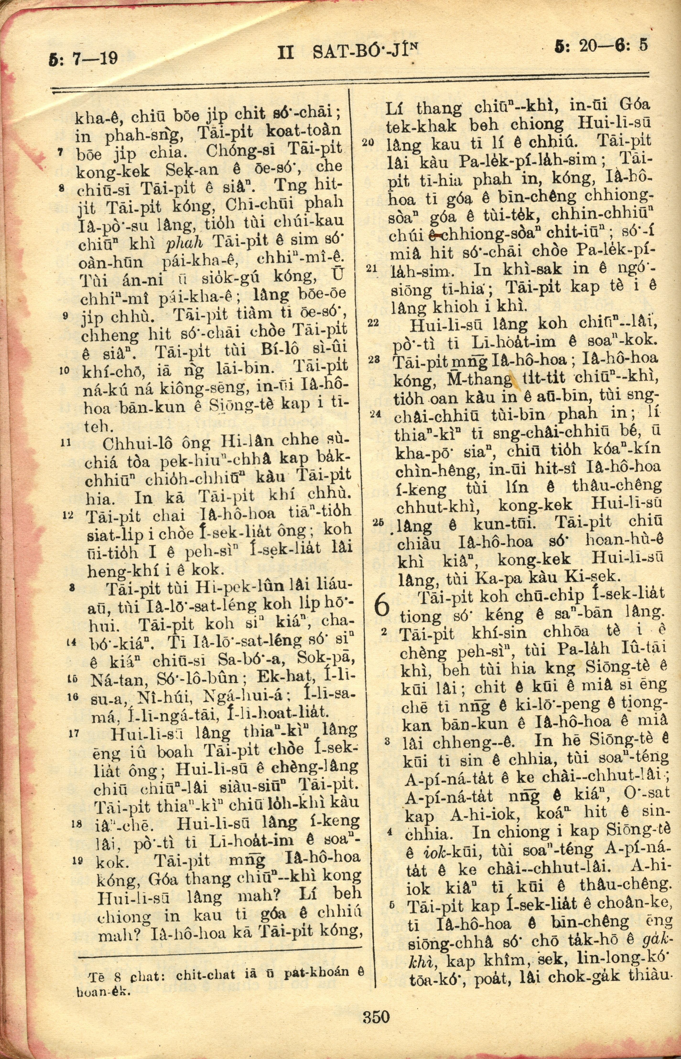 1957年巴克禮全羅台語聖經串珠版 撒母耳記下 5 章 7 節到 6 章 5 節
