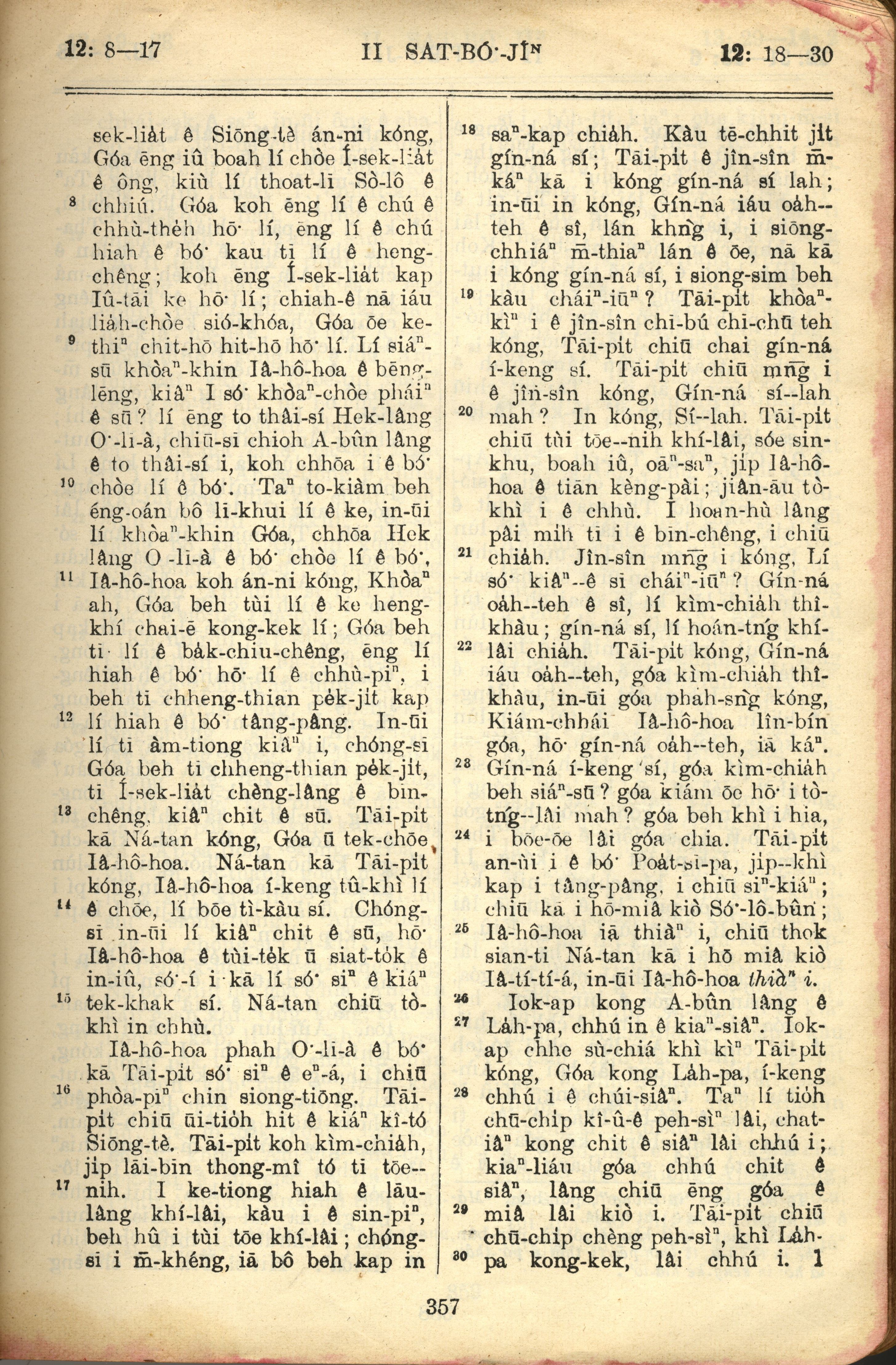 1957年巴克禮全羅台語聖經串珠版 撒母耳記下 12 章 8 節到 12 章 30 節