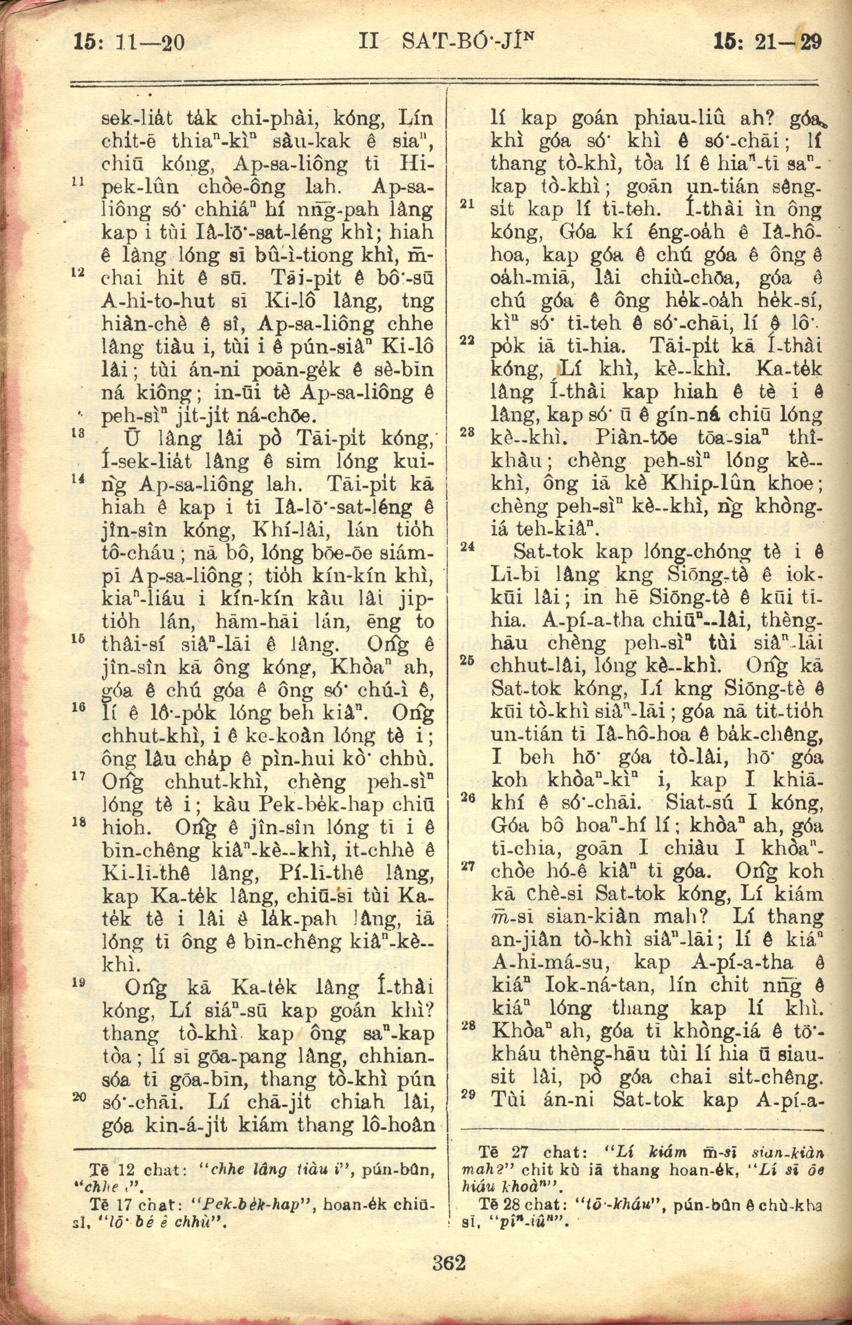 1957年巴克禮全羅台語聖經串珠版 撒母耳記下 15 章 11 節到 15 章 29 節