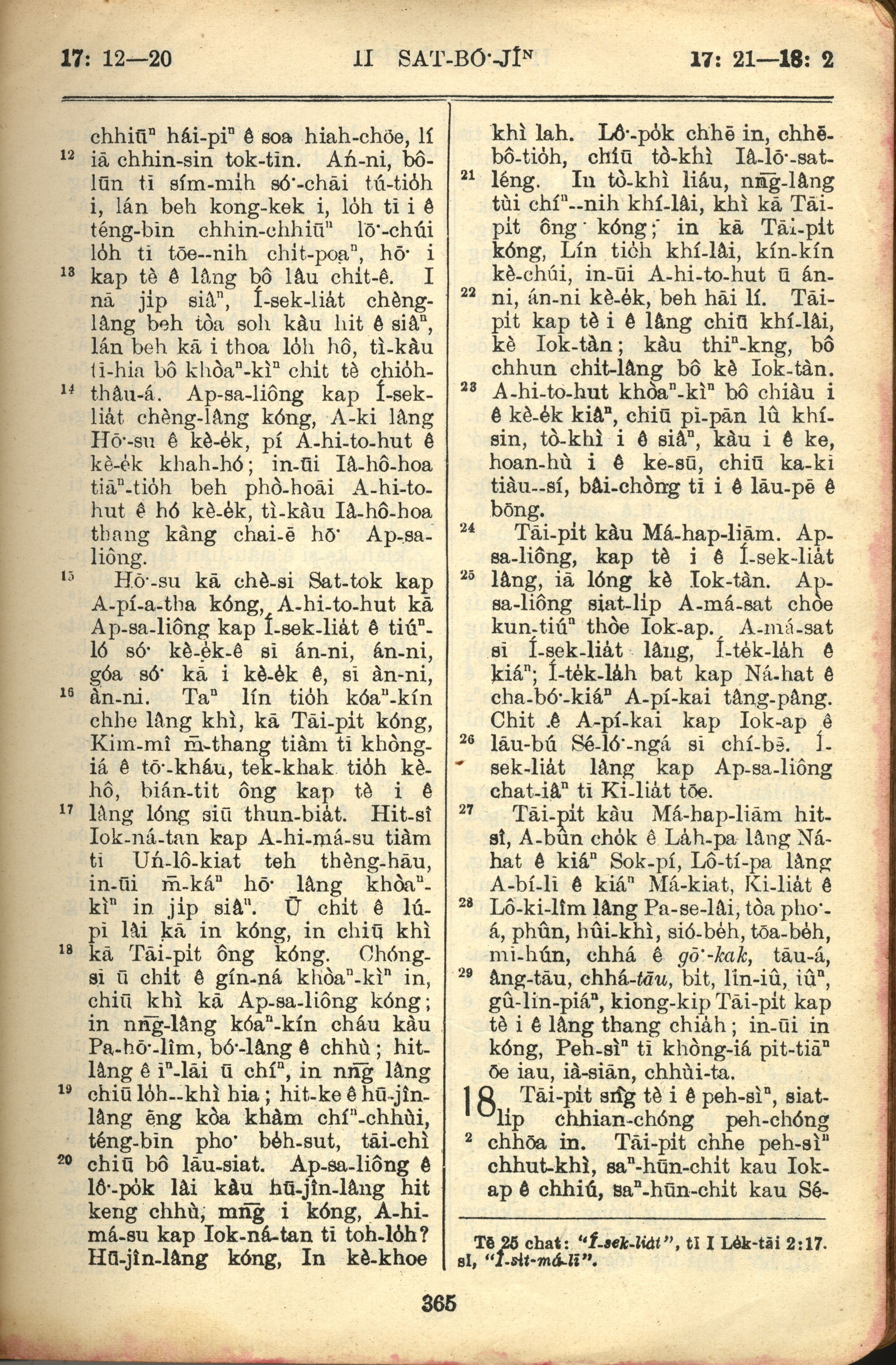 1957年巴克禮全羅台語聖經串珠版 撒母耳記下 17 章 12 節到 18 章 2 節