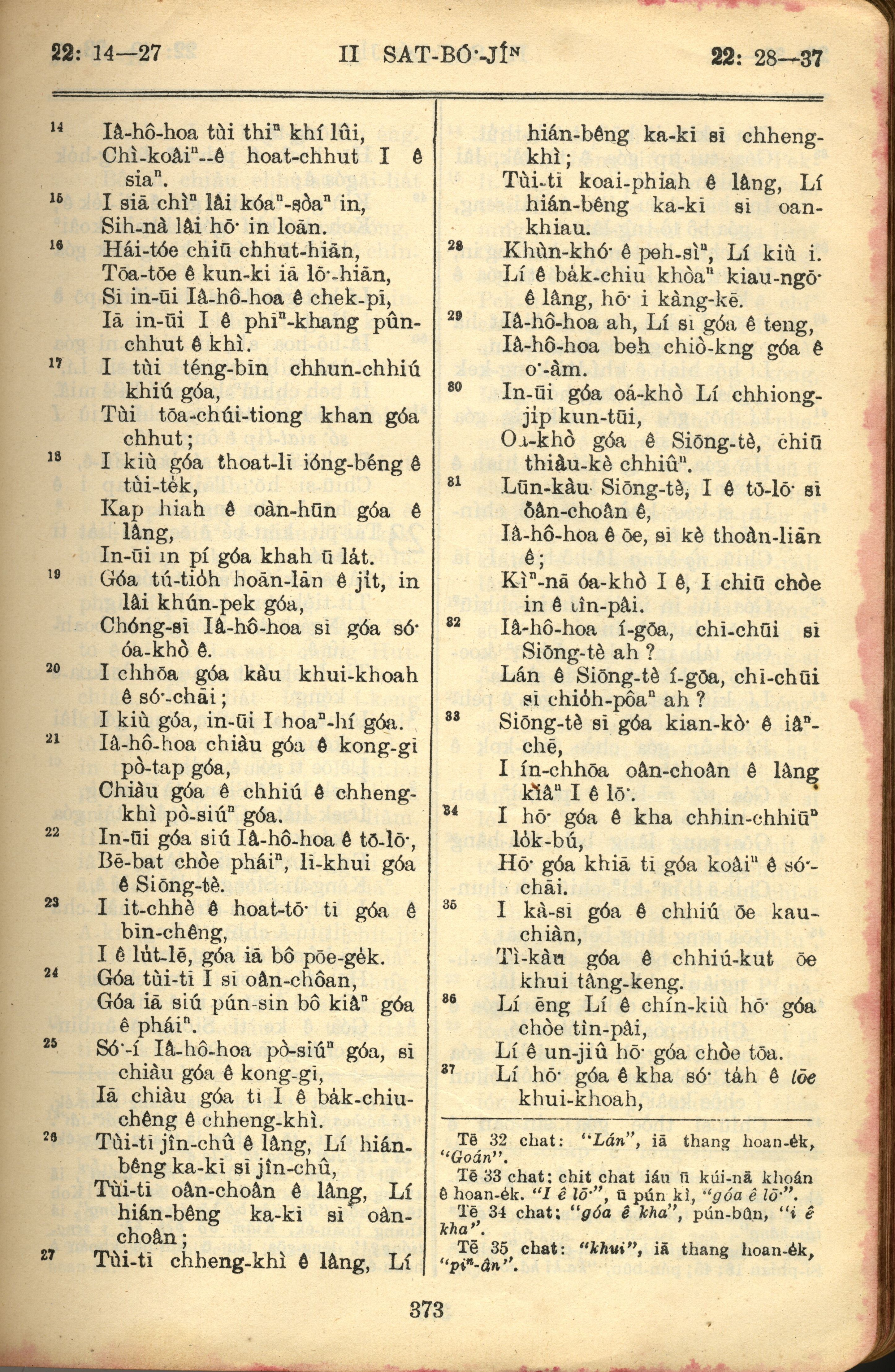 1957年巴克禮全羅台語聖經串珠版 撒母耳記下 22 章 14 節到 22 章 37 節