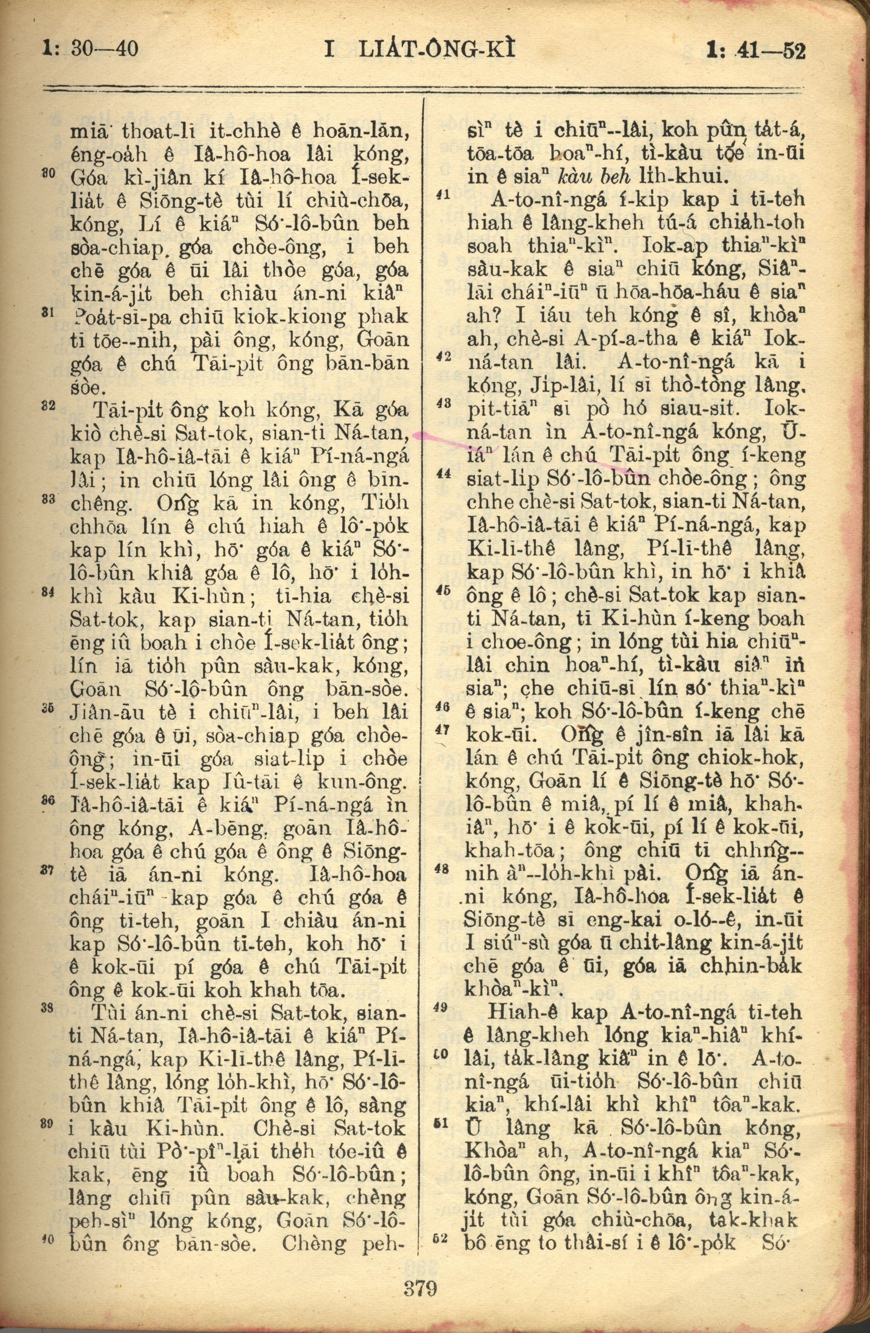 1957年巴克禮全羅台語聖經串珠版 列王紀上 1 章 30 節到 1 章 52 節