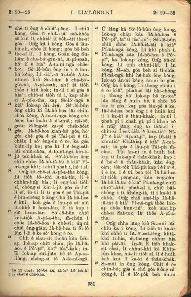 1957年巴克禮全羅台語聖經串珠版 列王紀上 2 章 20 節到 2 章 38 節