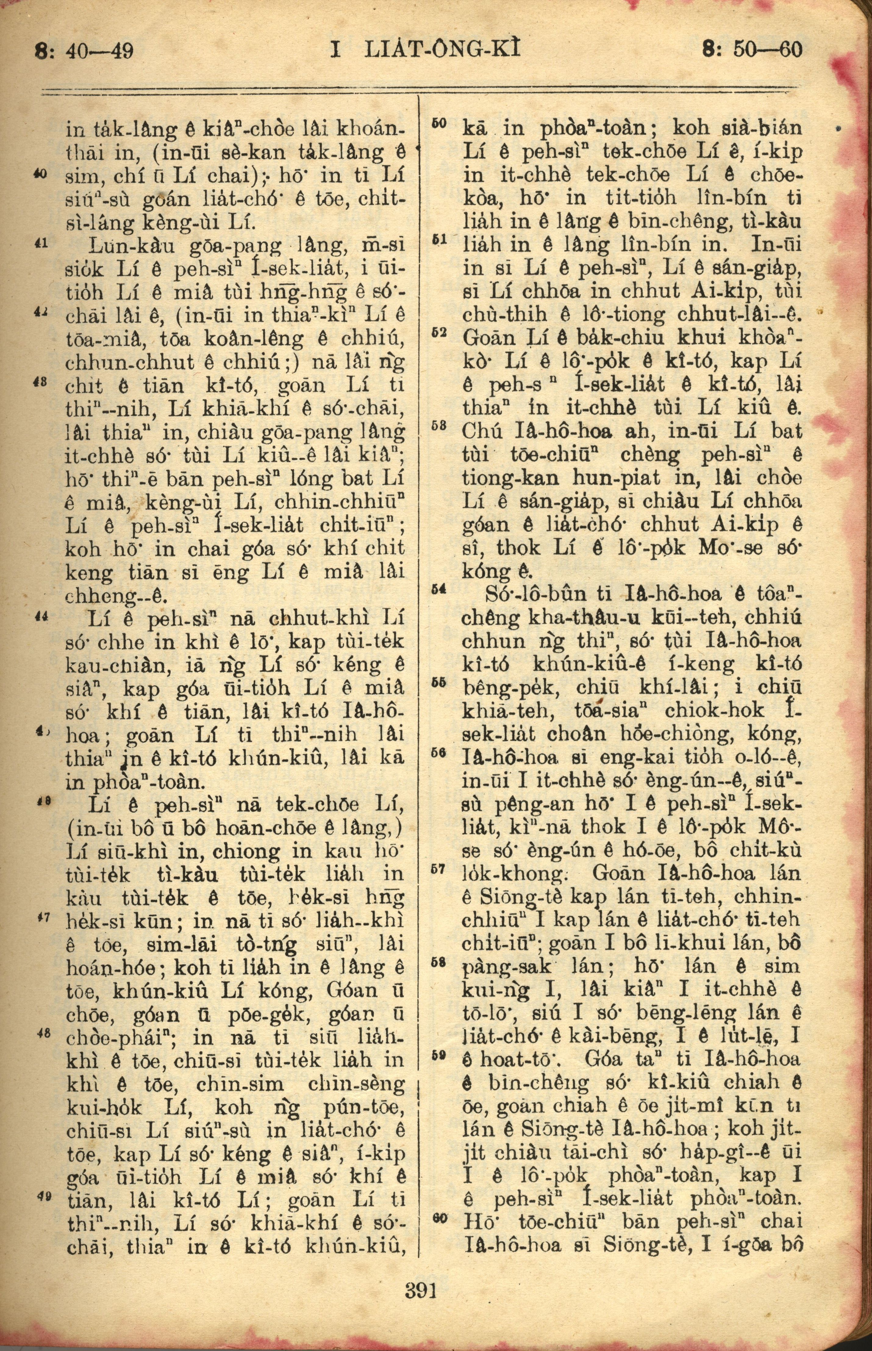 1957年巴克禮全羅台語聖經串珠版 列王紀上 8 章 40 節到 8 章 60 節