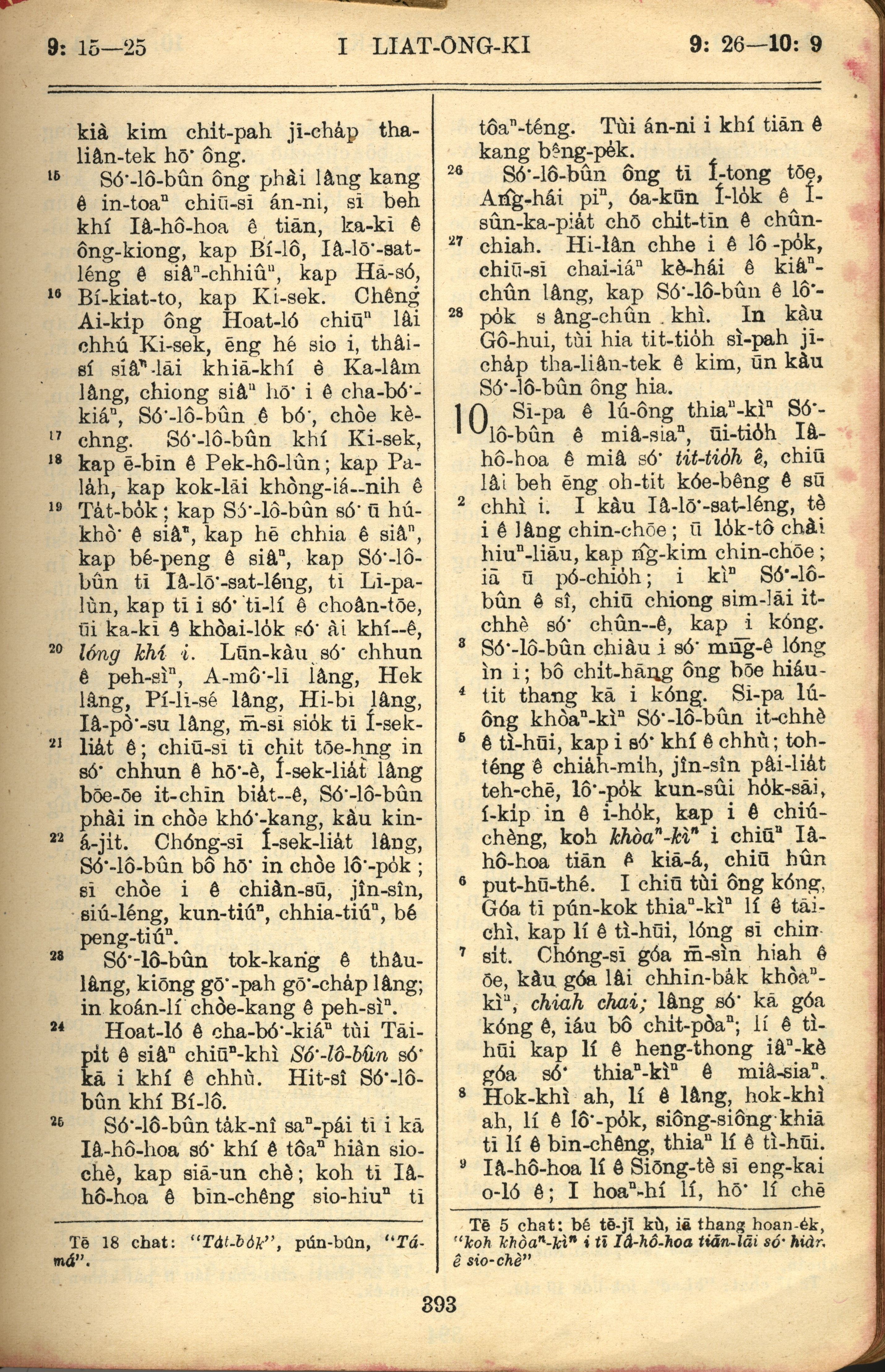 1957年巴克禮全羅台語聖經串珠版 列王紀上 9 章 15 節到 10 章 9 節
