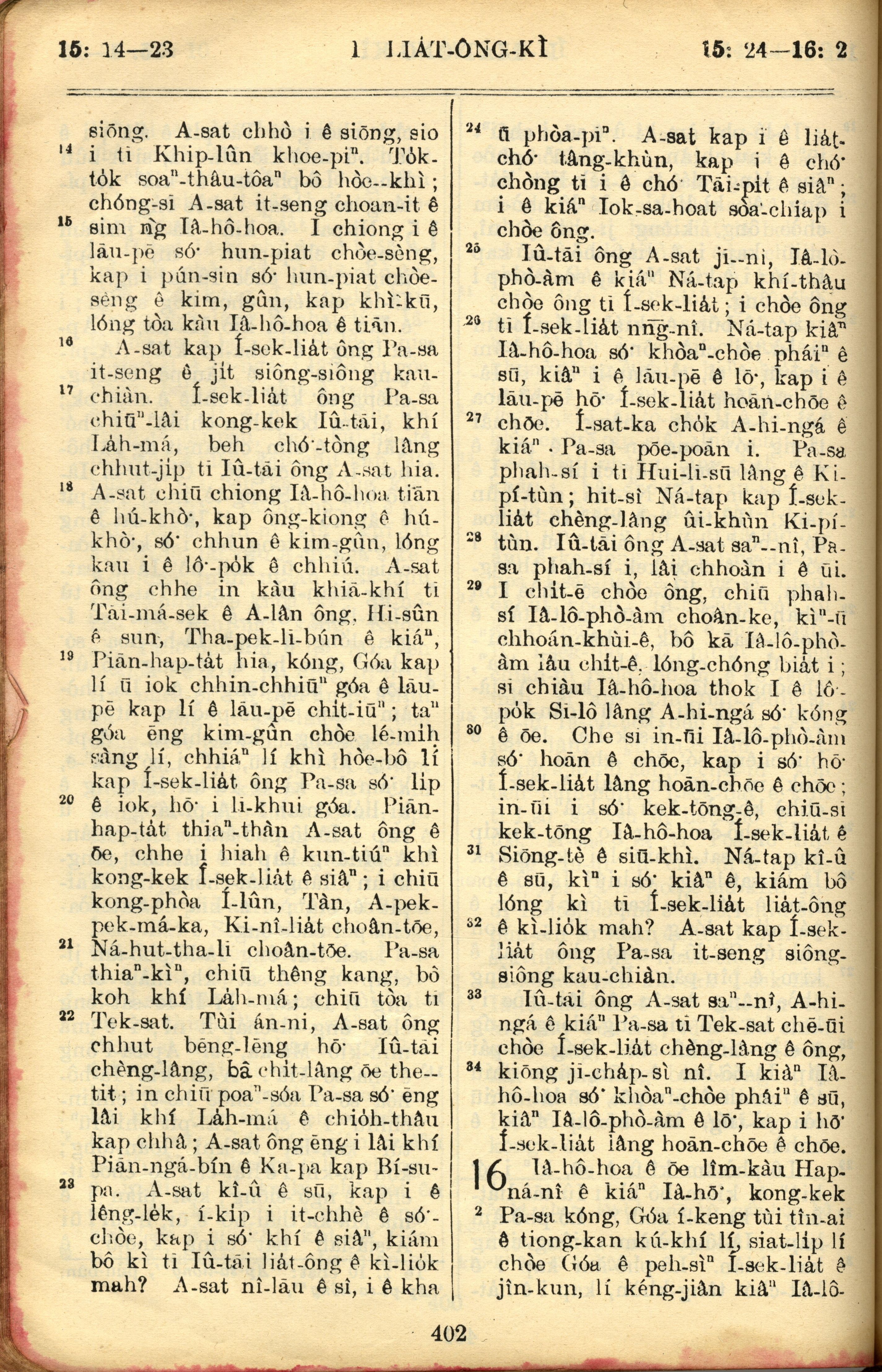 1957年巴克禮全羅台語聖經串珠版 列王紀上 15 章 14 節到 16 章 2 節