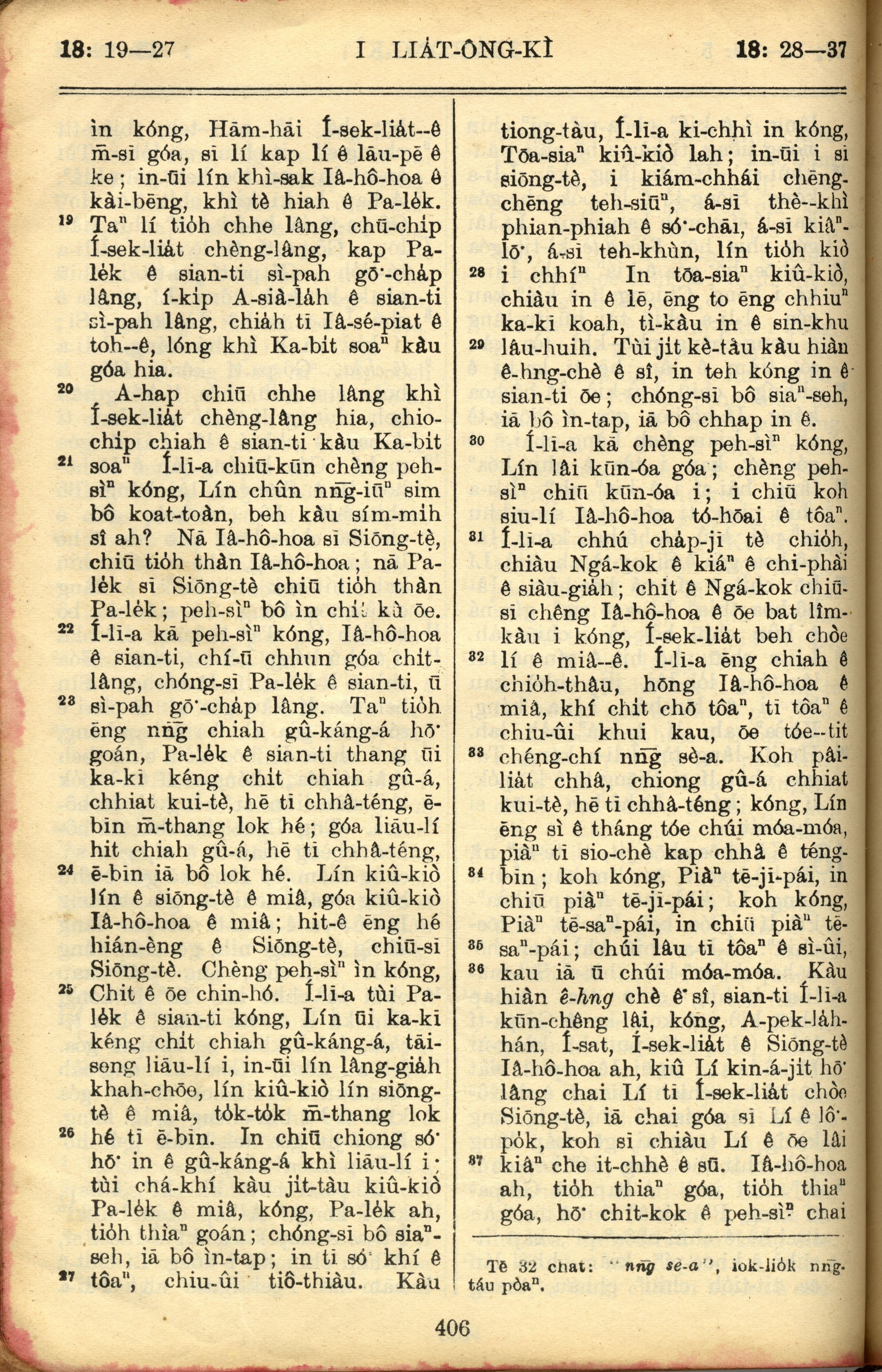 1957年巴克禮全羅台語聖經串珠版 列王紀上 18 章 19 節到 18 章 37 節