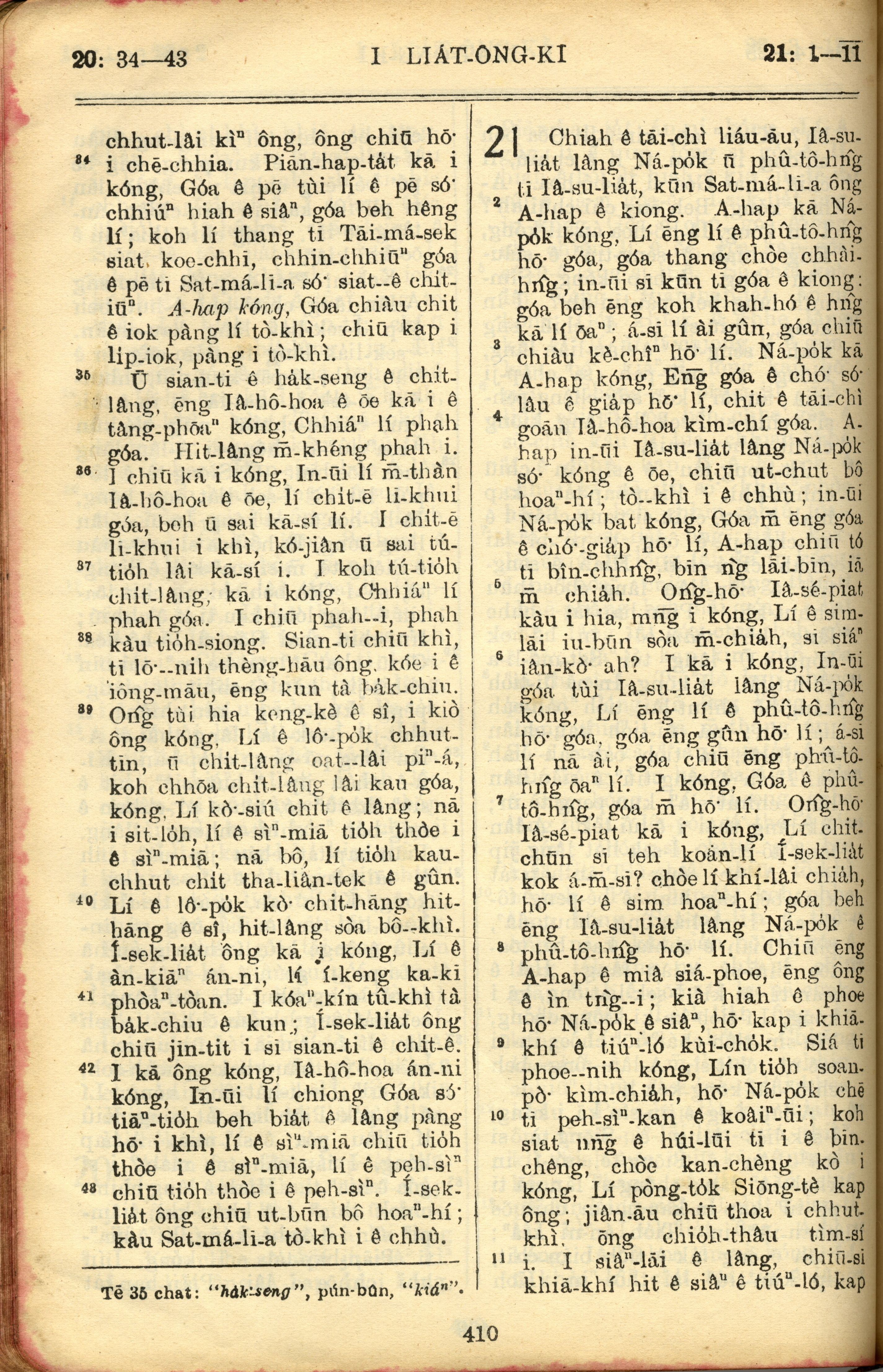 1957年巴克禮全羅台語聖經串珠版 列王紀上 20 章 34 節到 21 章 11 節