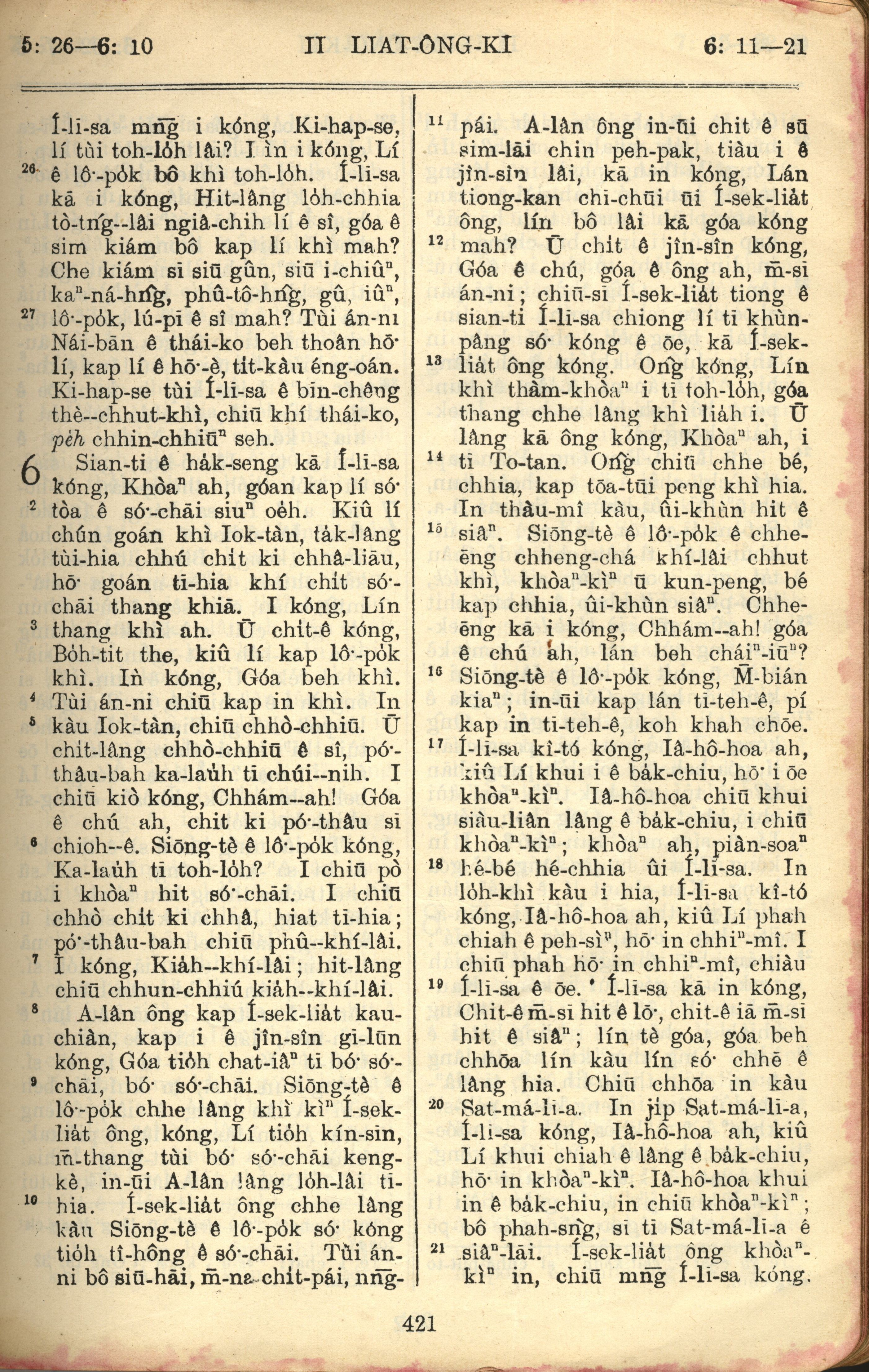 1957年巴克禮全羅台語聖經串珠版 列王紀下 5 章 26 節到 6 章 21 節
