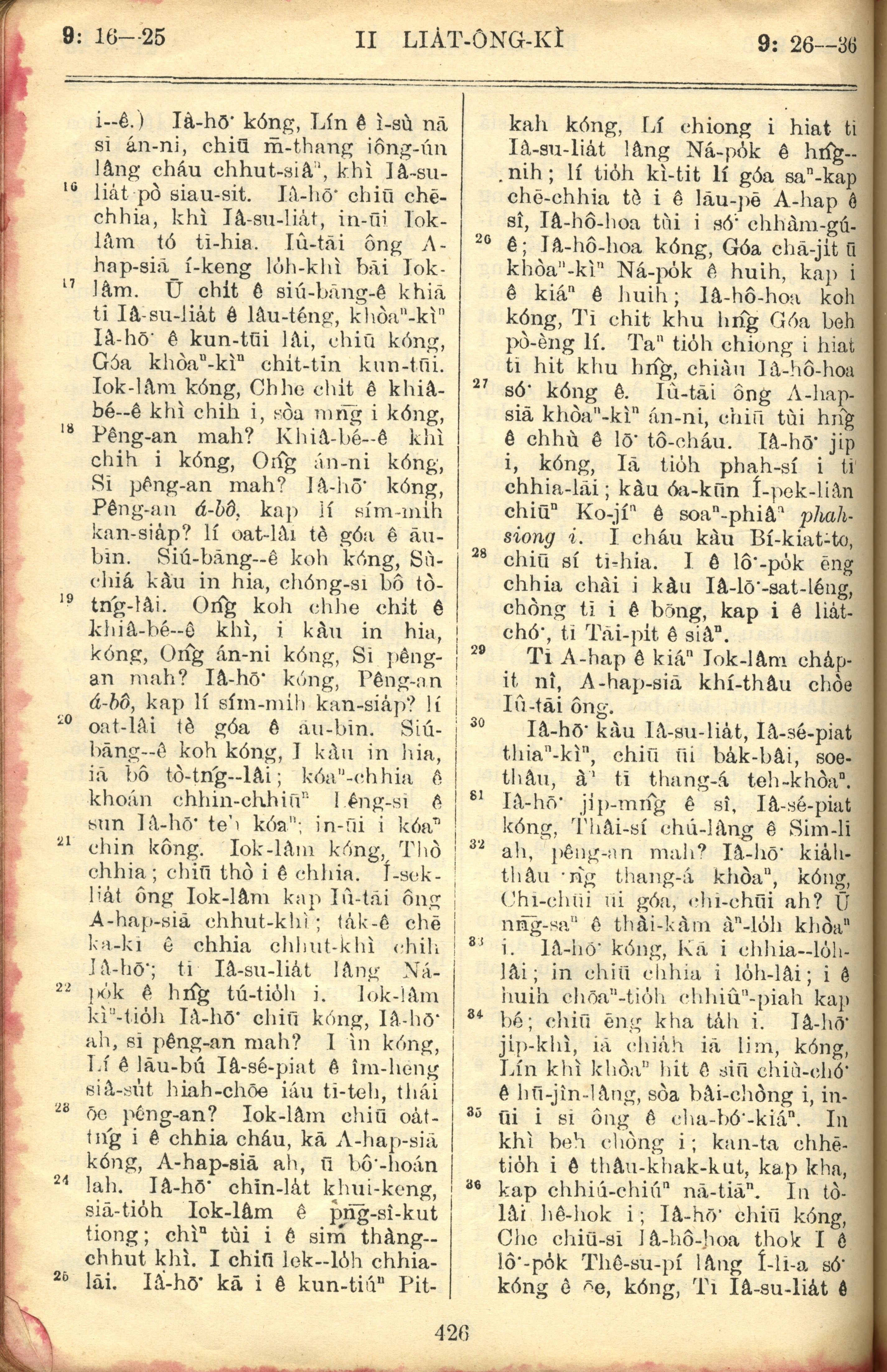 1957年巴克禮全羅台語聖經串珠版 列王紀下 9 章 16 節到 9 章 36 節