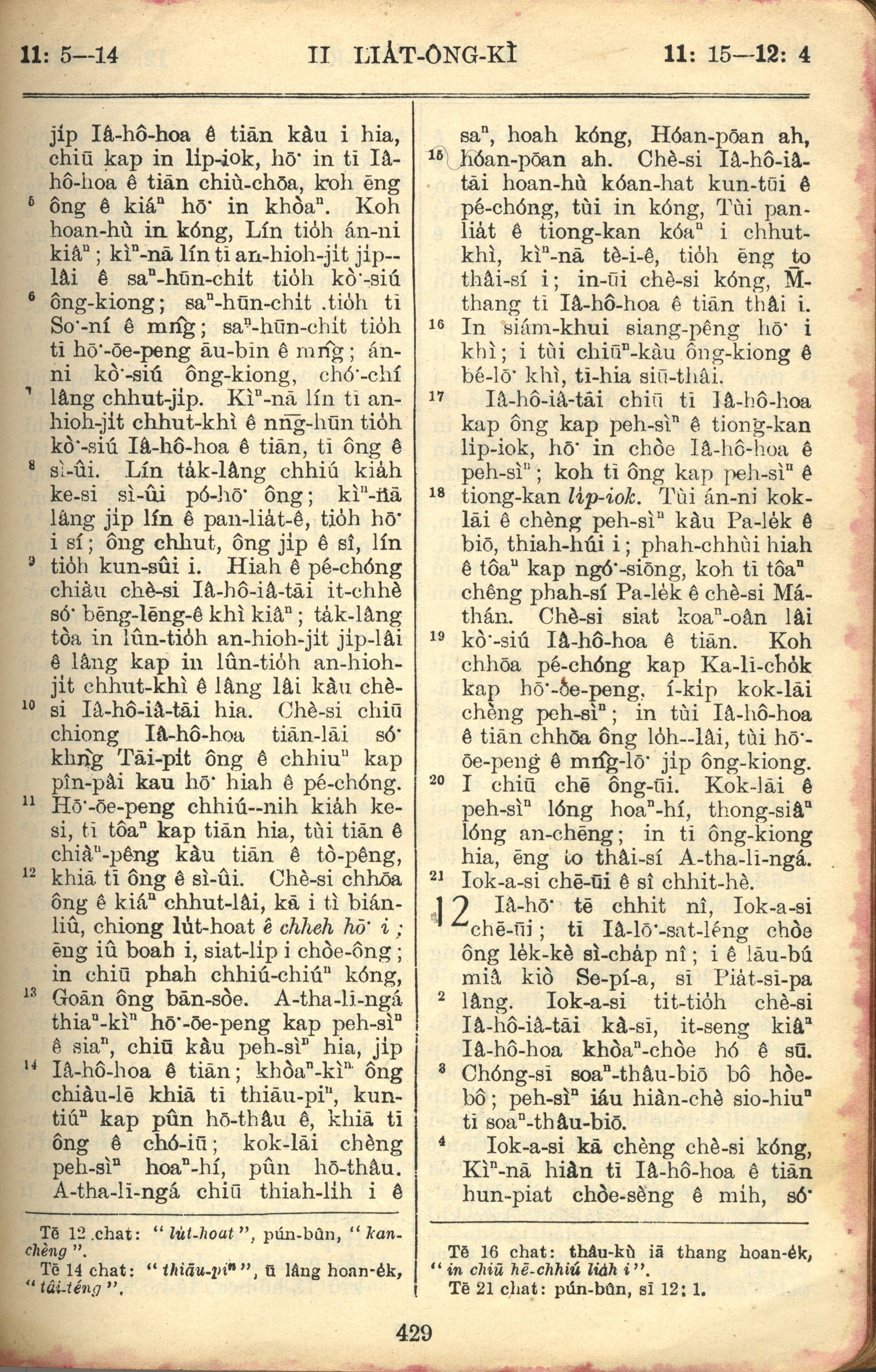 1957年巴克禮全羅台語聖經串珠版 列王紀下 11 章 5 節到 12 章 4 節