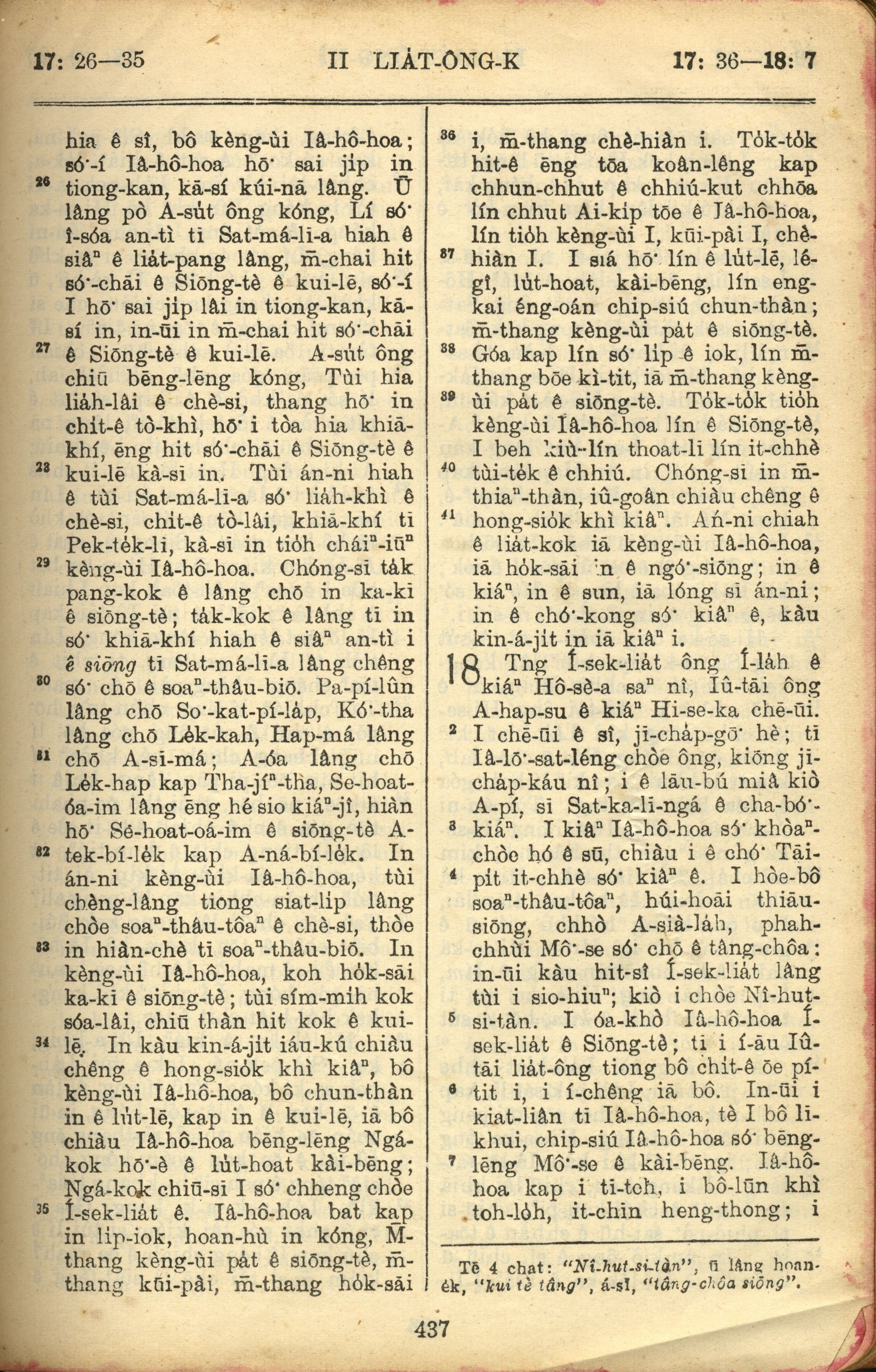 1957年巴克禮全羅台語聖經串珠版 列王紀下 17 章 26 節到 18 章 7 節
