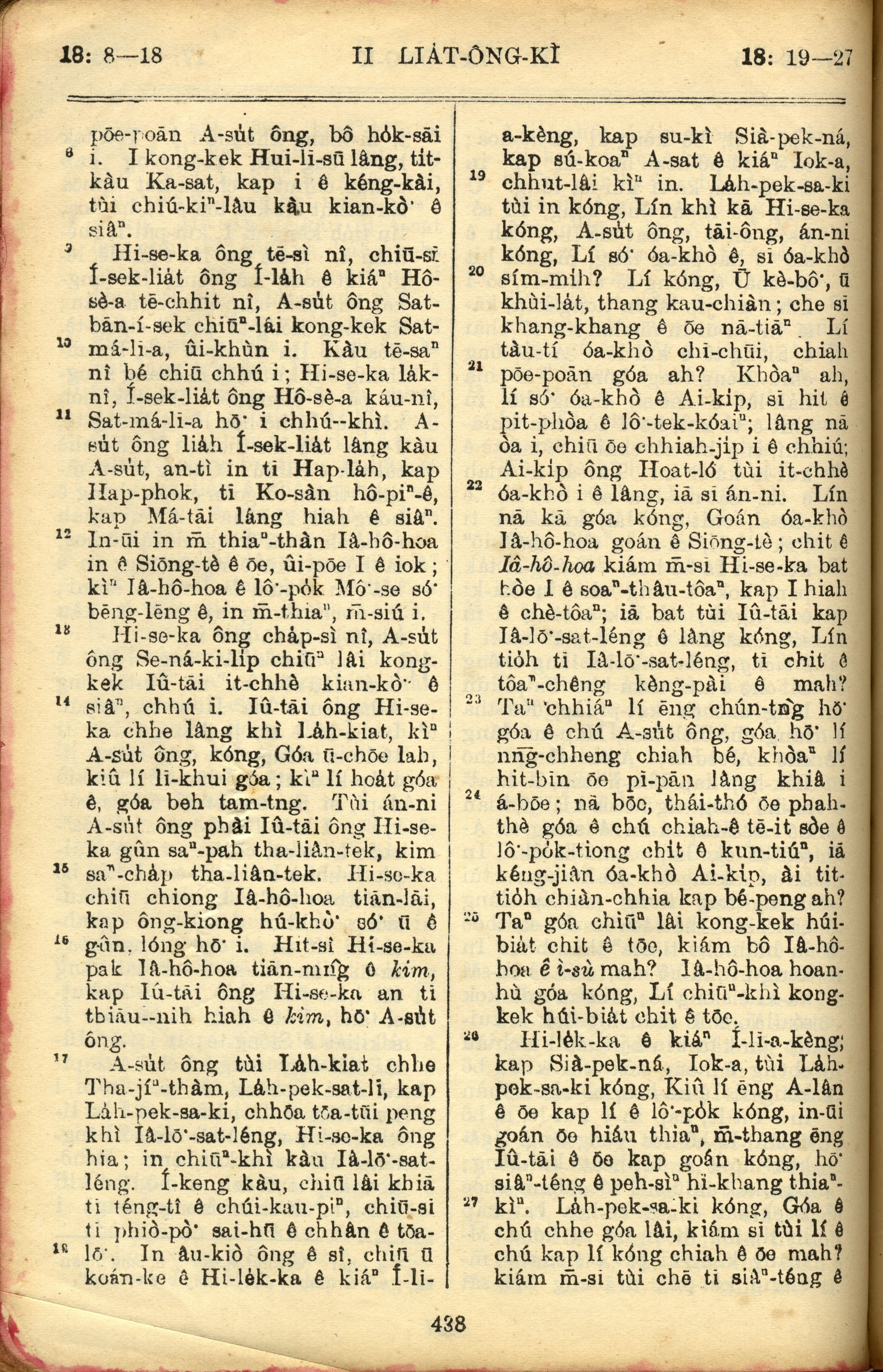 1957年巴克禮全羅台語聖經串珠版 列王紀下 18 章 8 節到 18 章 27 節