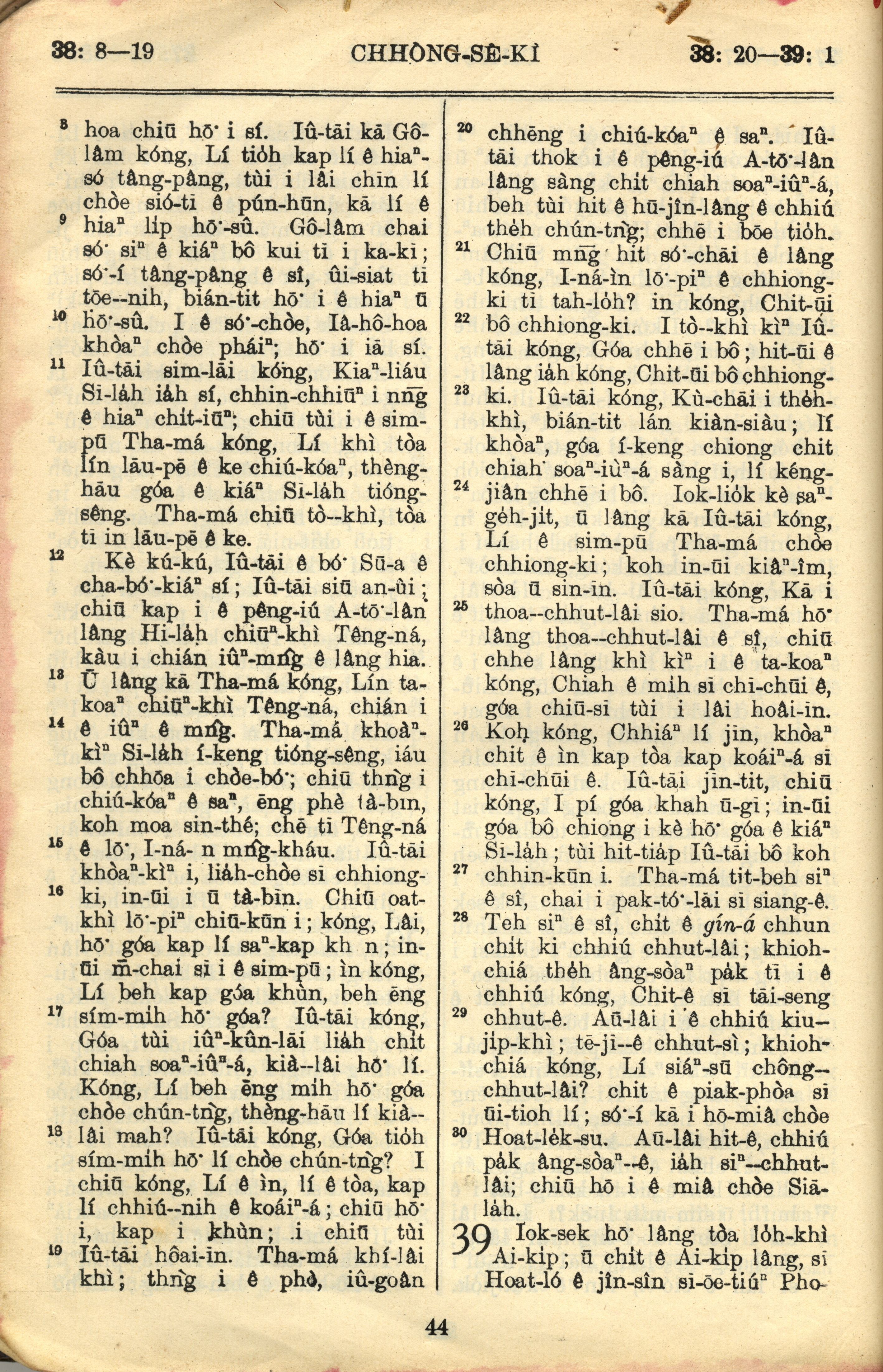 1957年巴克禮全羅台語聖經串珠版 創世記 38 章 8 節到 39 章 1 節