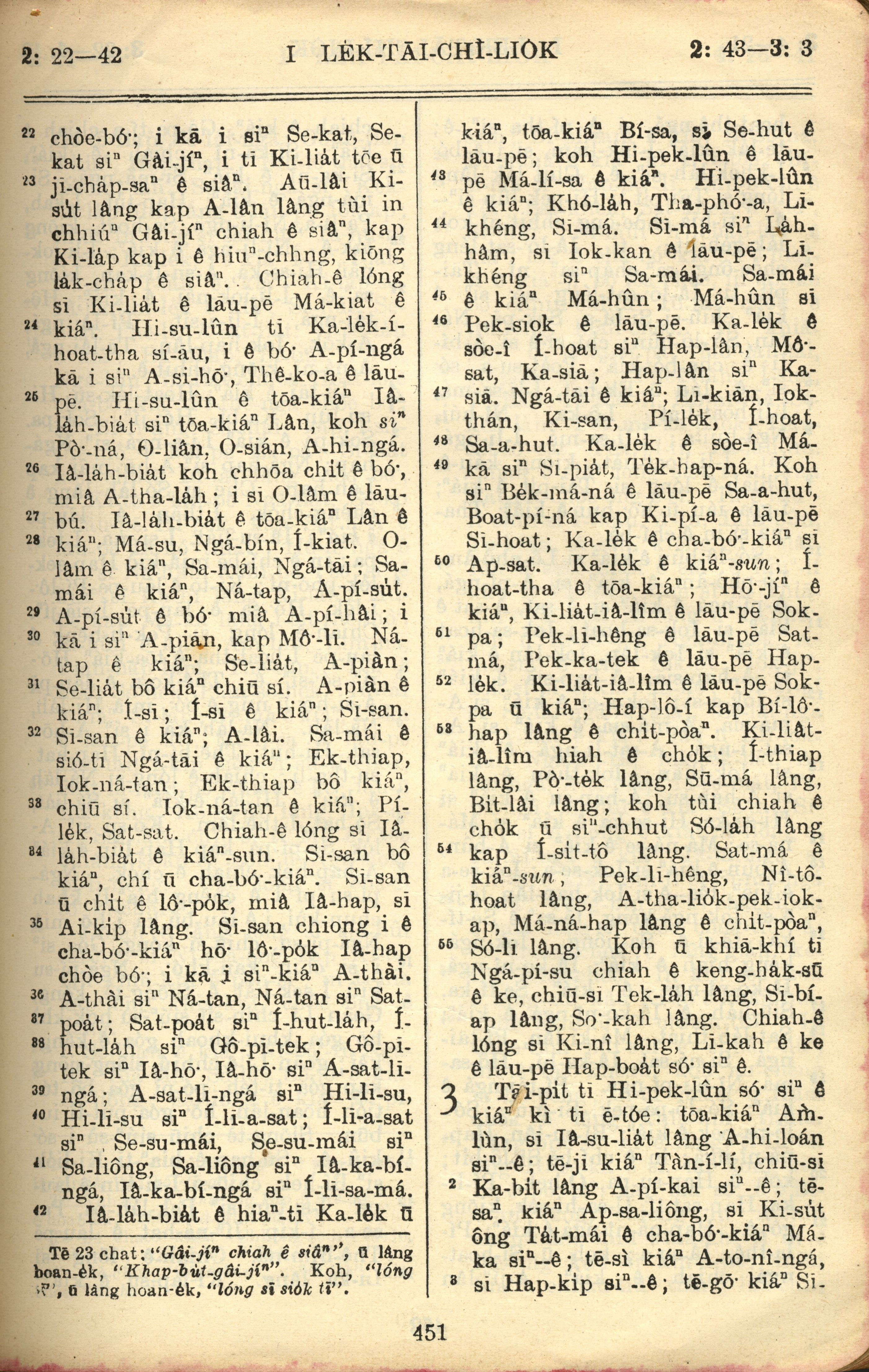 1957年巴克禮全羅台語聖經串珠版 歷代志上 2 章 22 節到 3 章 3 節