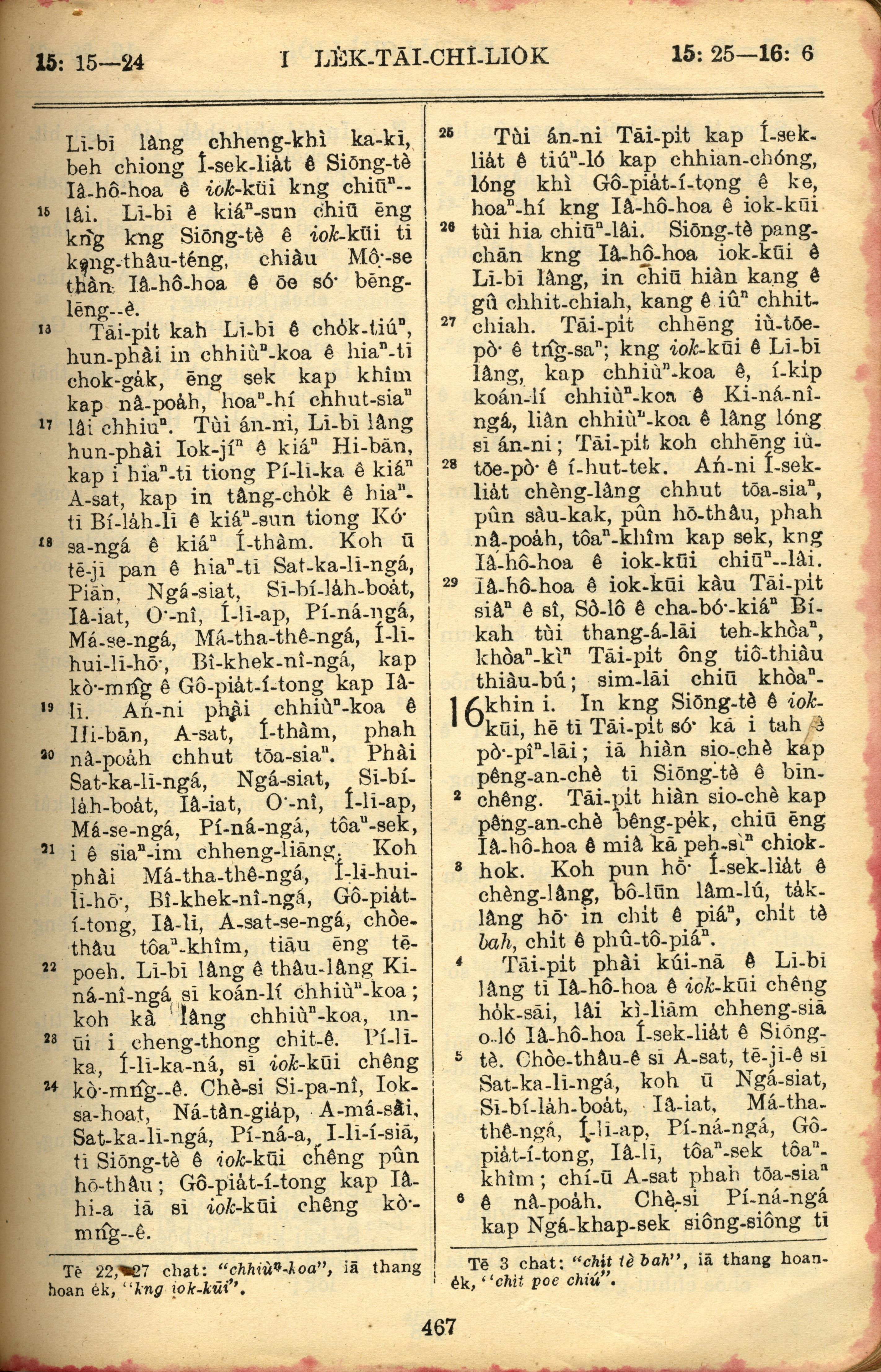 1957年巴克禮全羅台語聖經串珠版 歷代志上 15 章 15 節到 16 章 6 節