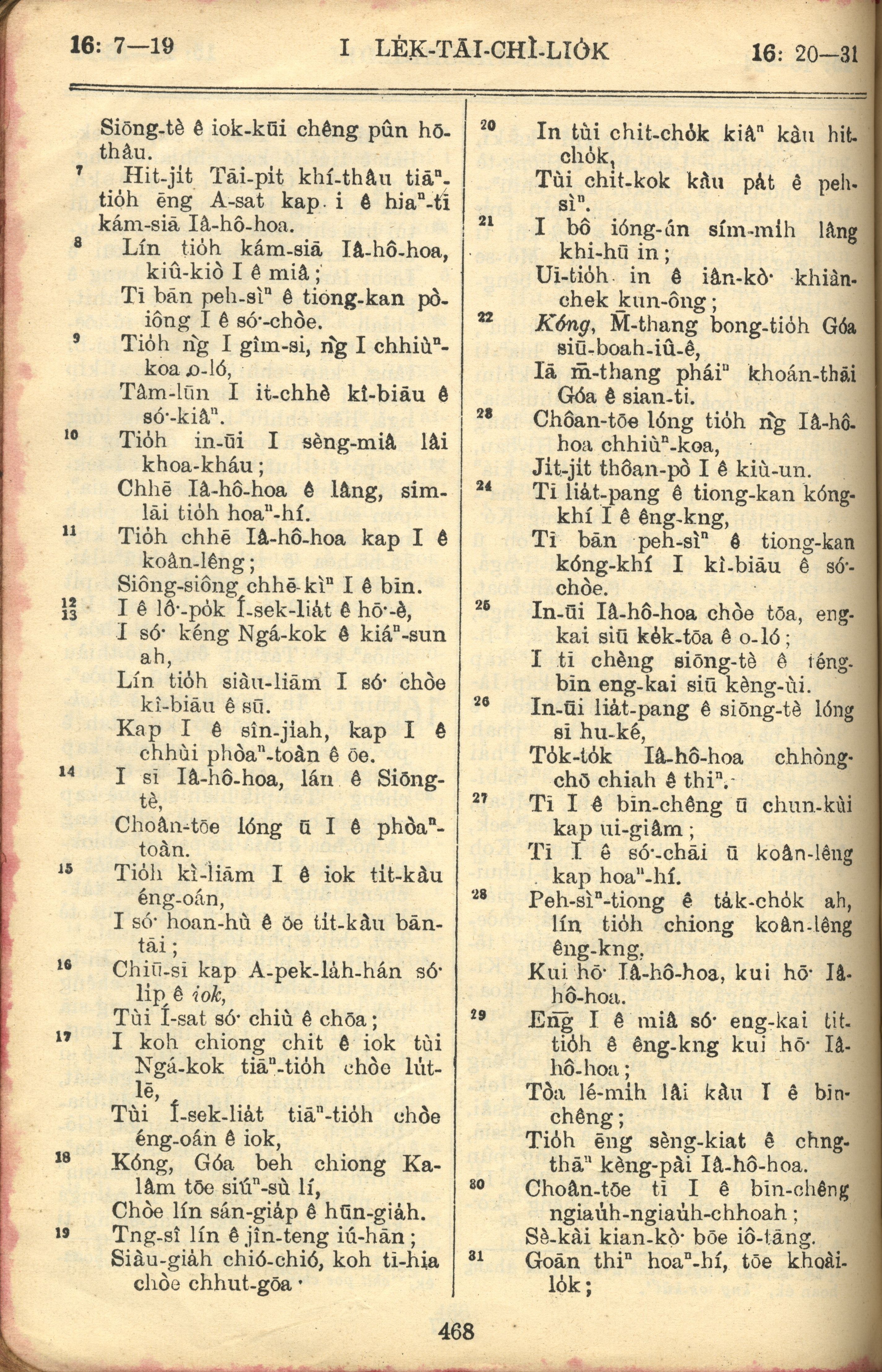1957年巴克禮全羅台語聖經串珠版 歷代志上 16 章 7 節到 16 章 31 節