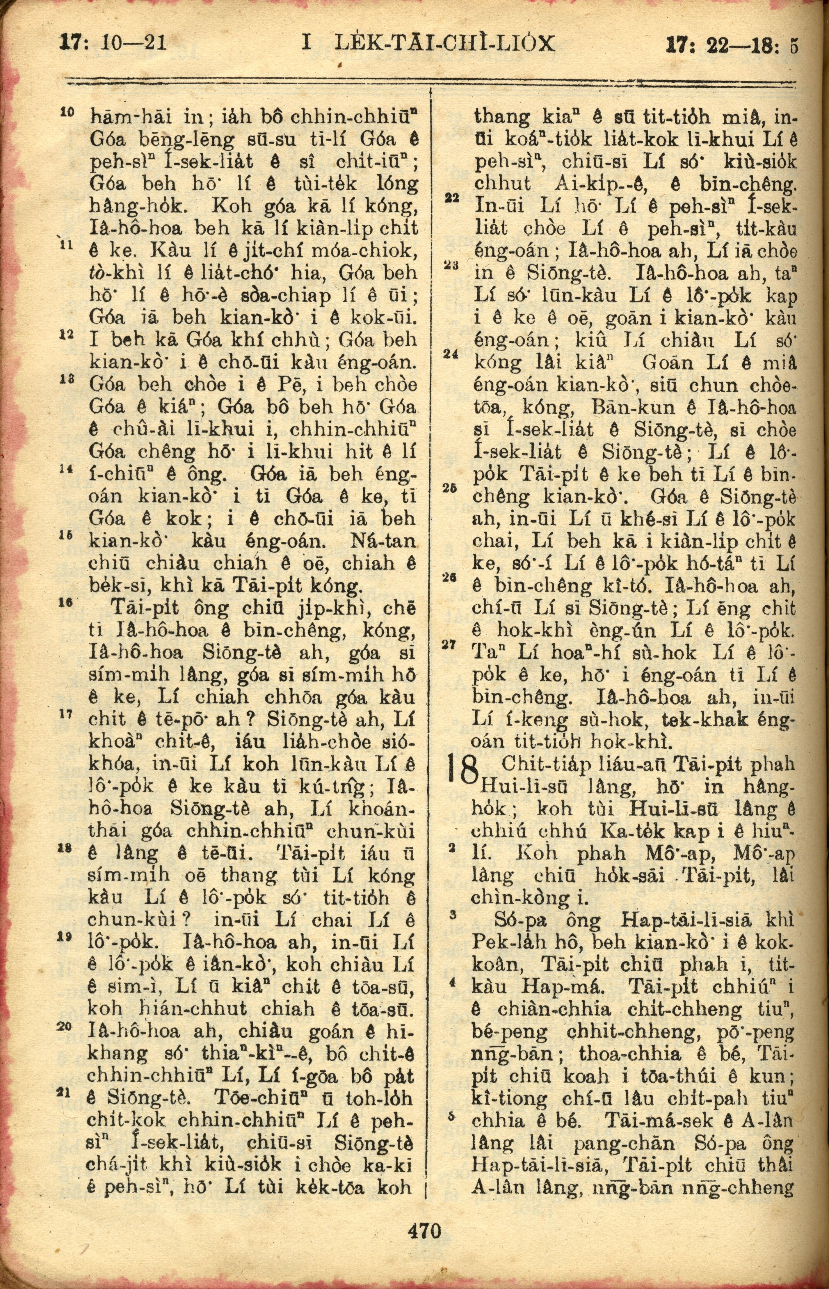 1957年巴克禮全羅台語聖經串珠版 歷代志上 17 章 10 節到 18 章 5 節