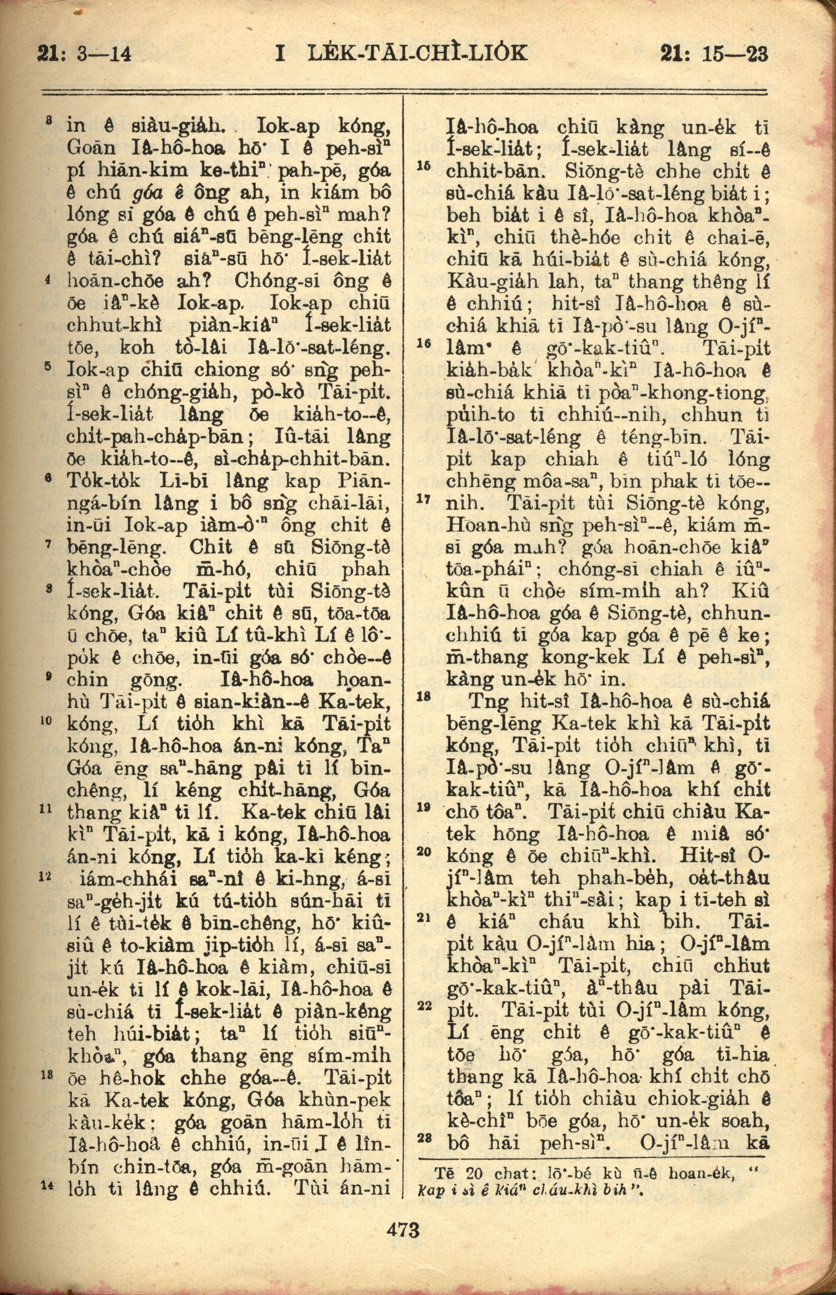 1957年巴克禮全羅台語聖經串珠版 歷代志上 21 章 3 節到 21 章 23 節
