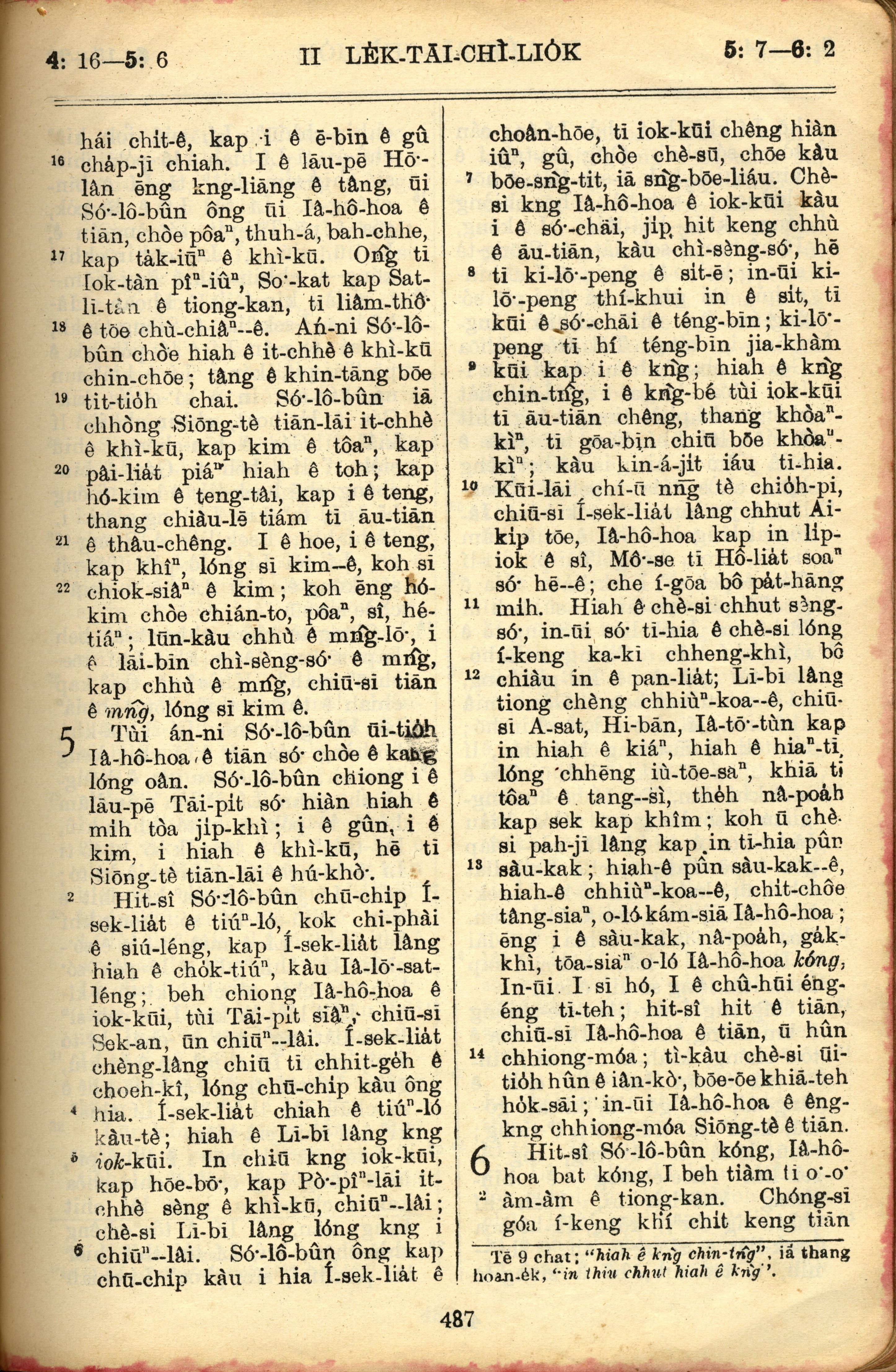 1957年巴克禮全羅台語聖經串珠版 歷代志下 4 章 16 節到 6 章 2 節