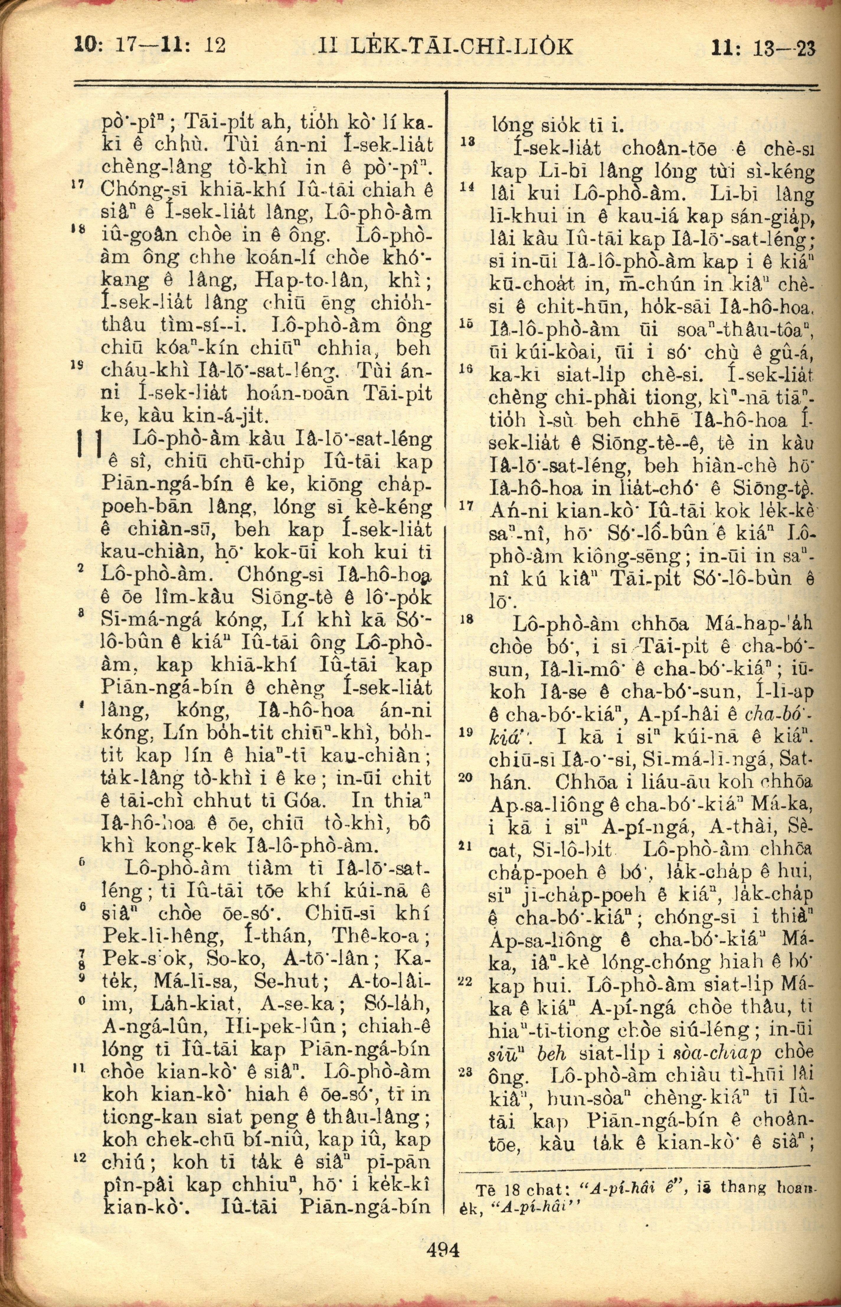 1957年巴克禮全羅台語聖經串珠版 歷代志下 10 章 17 節到 11 章 23 節