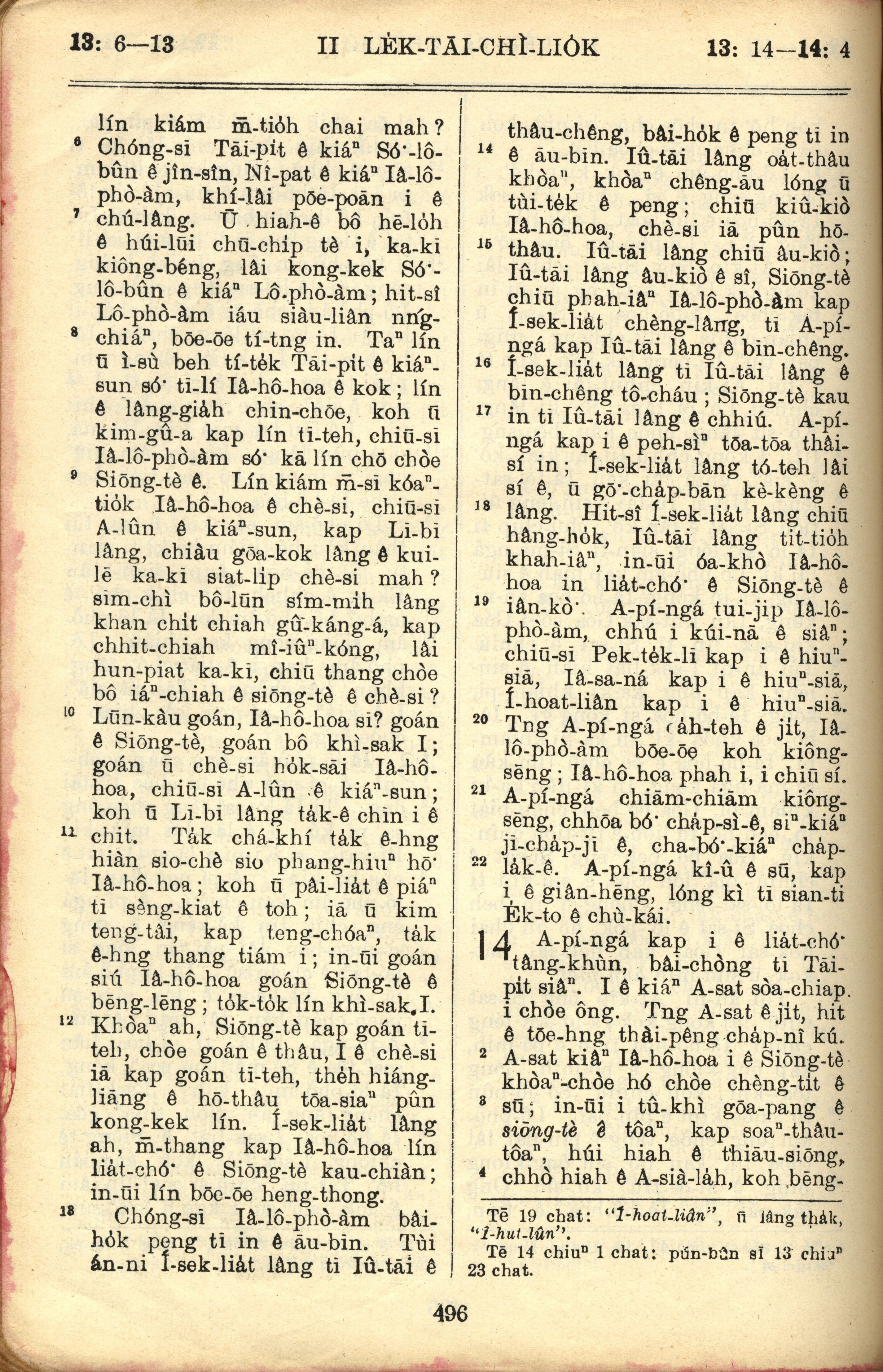 1957年巴克禮全羅台語聖經串珠版 歷代志下 13 章 6 節到 14 章 4 節