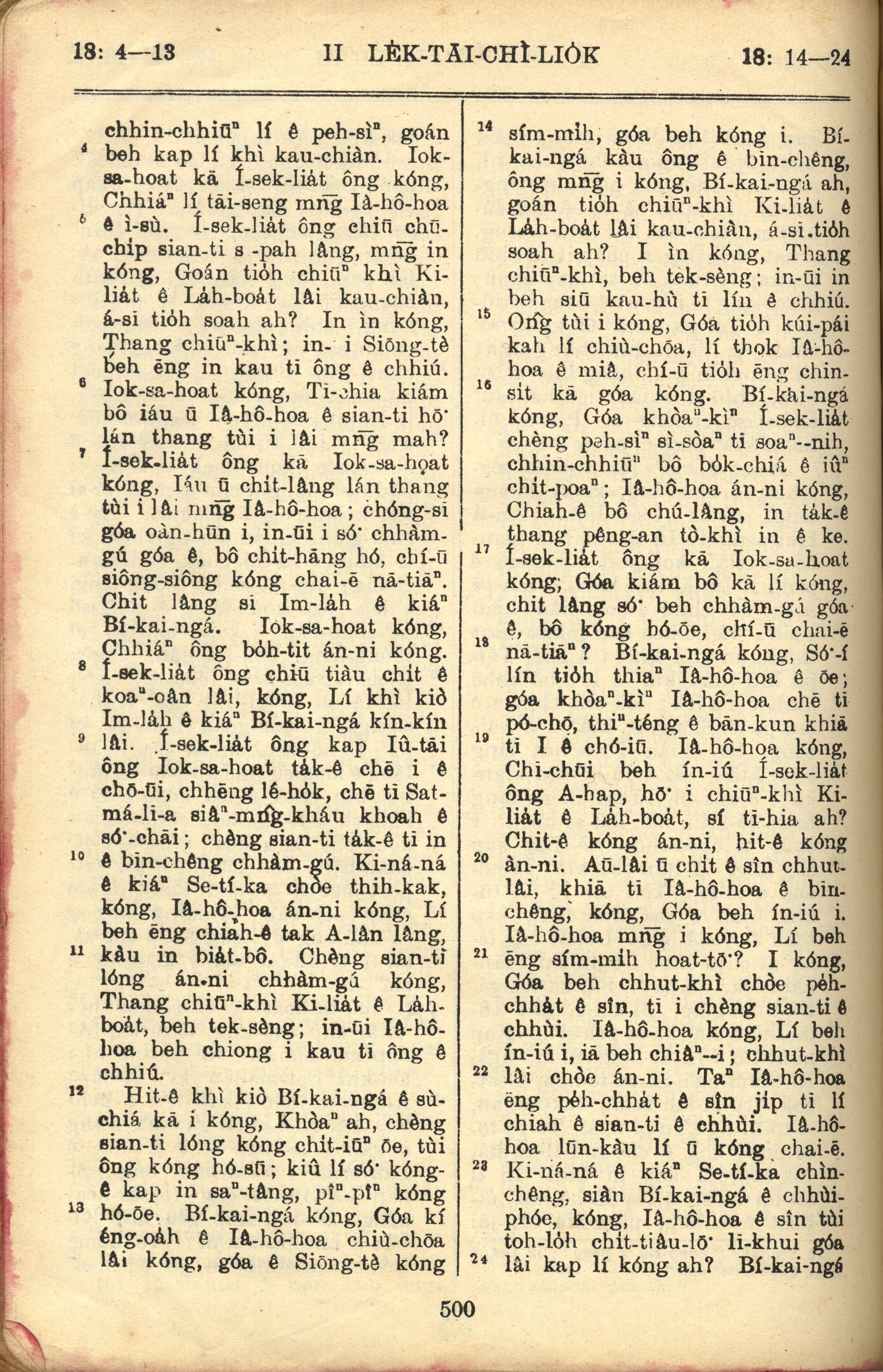 1957年巴克禮全羅台語聖經串珠版 歷代志下 18 章 4 節到 18 章 24 節