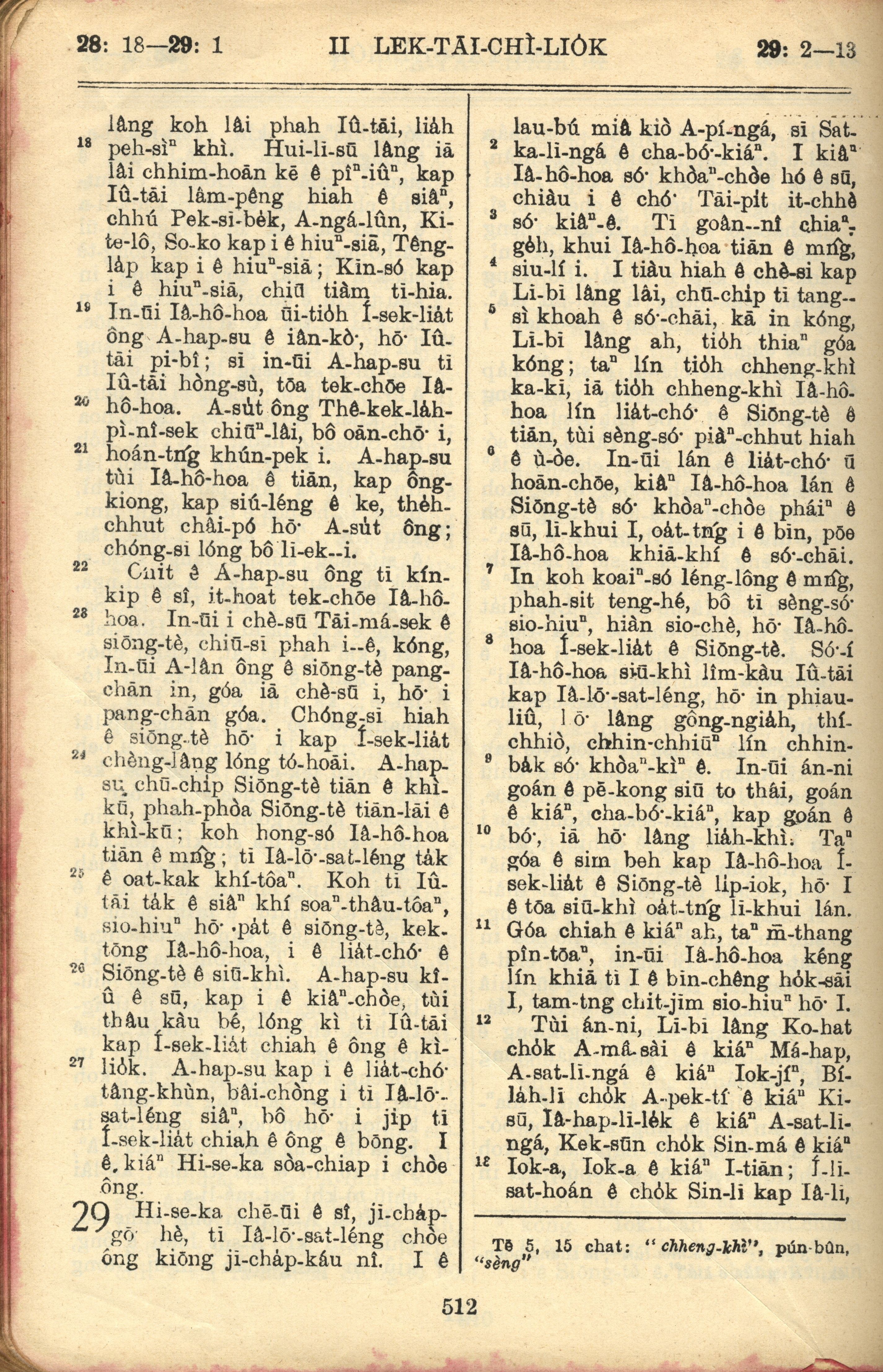 1957年巴克禮全羅台語聖經串珠版 歷代志下 28 章 18 節到 29 章 13 節