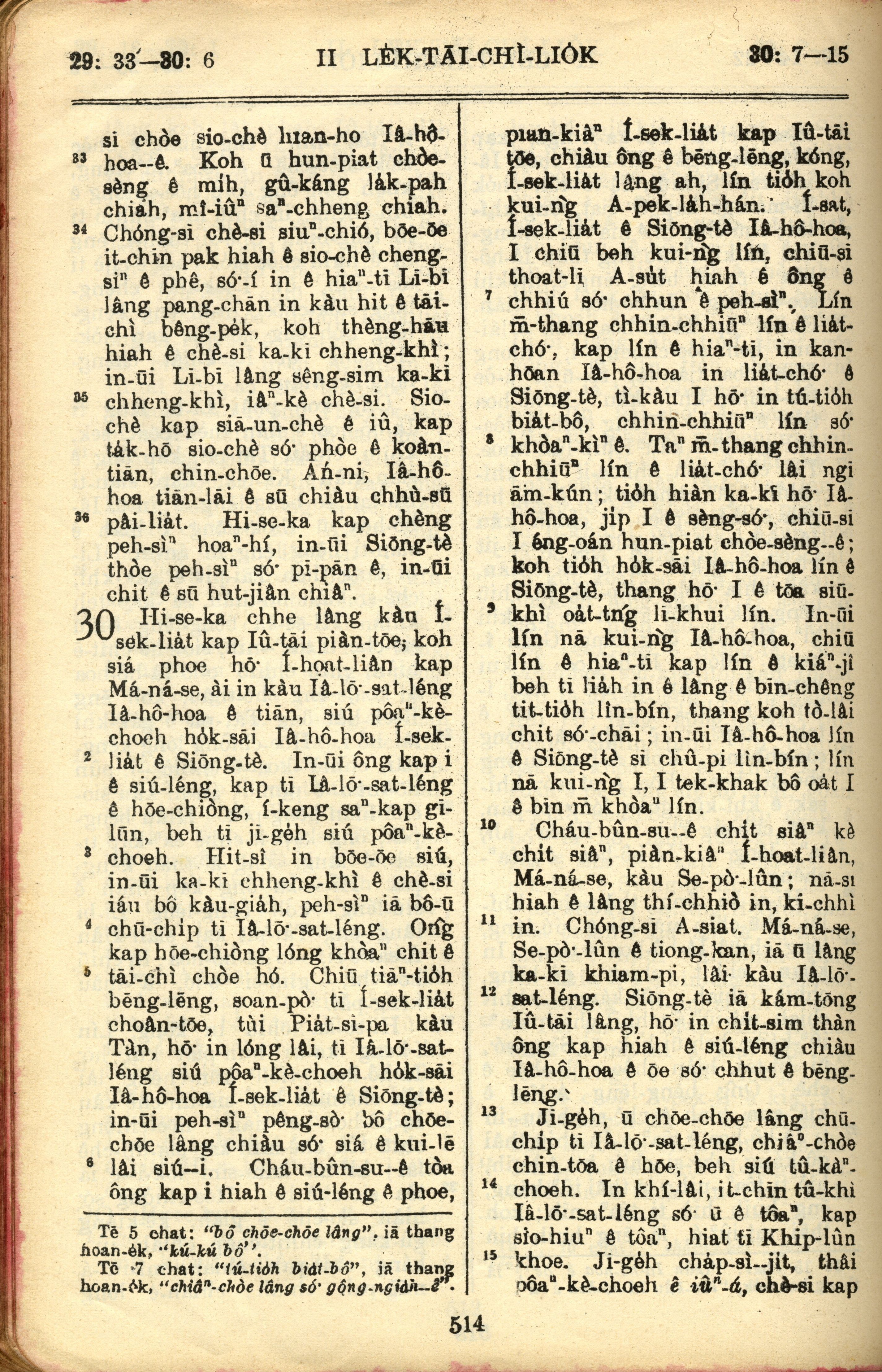 1957年巴克禮全羅台語聖經串珠版 歷代志下 29 章 33 節到 30 章 15 節