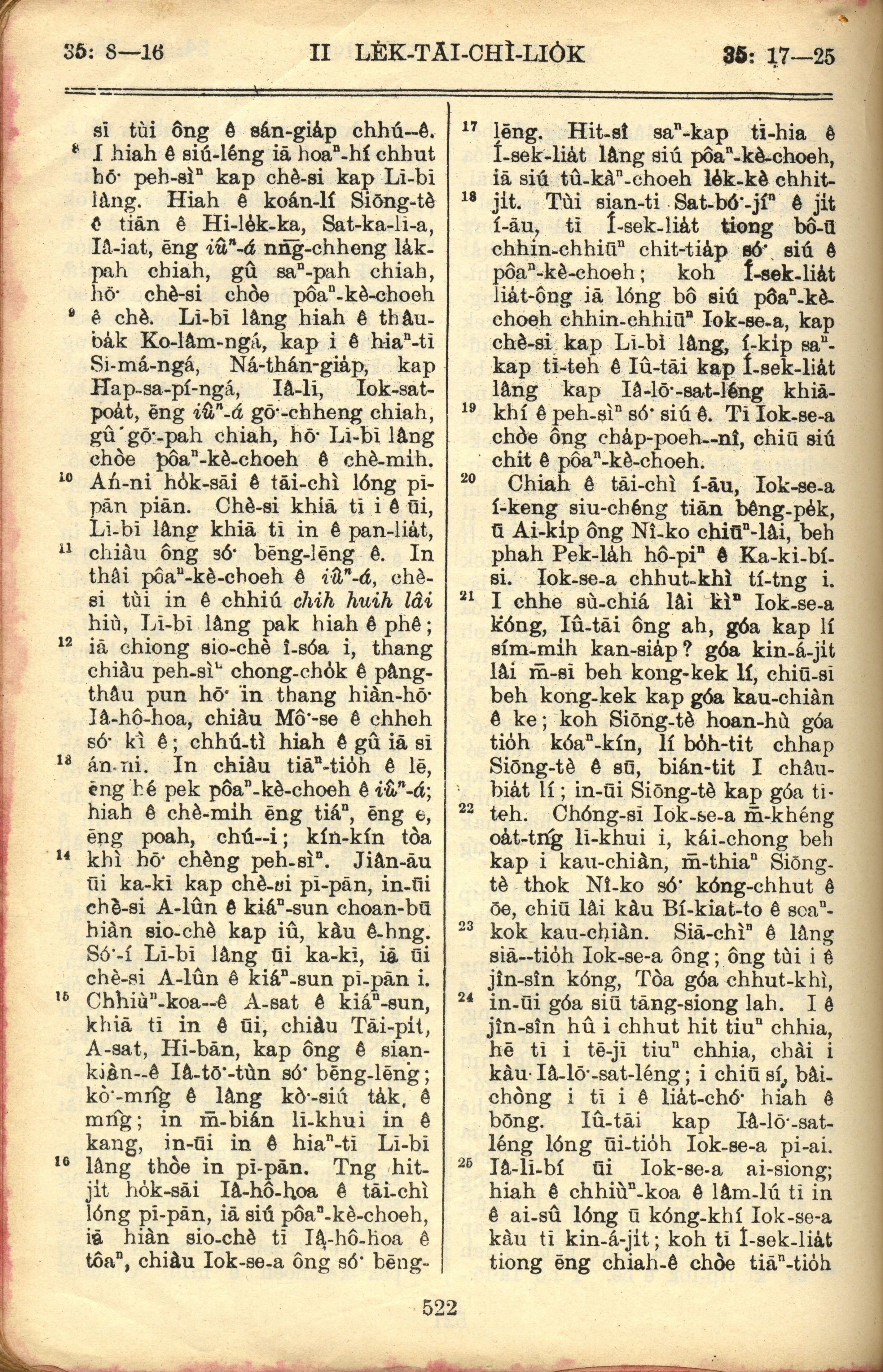 1957年巴克禮全羅台語聖經串珠版 歷代志下 35 章 8 節到 35 章 25 節