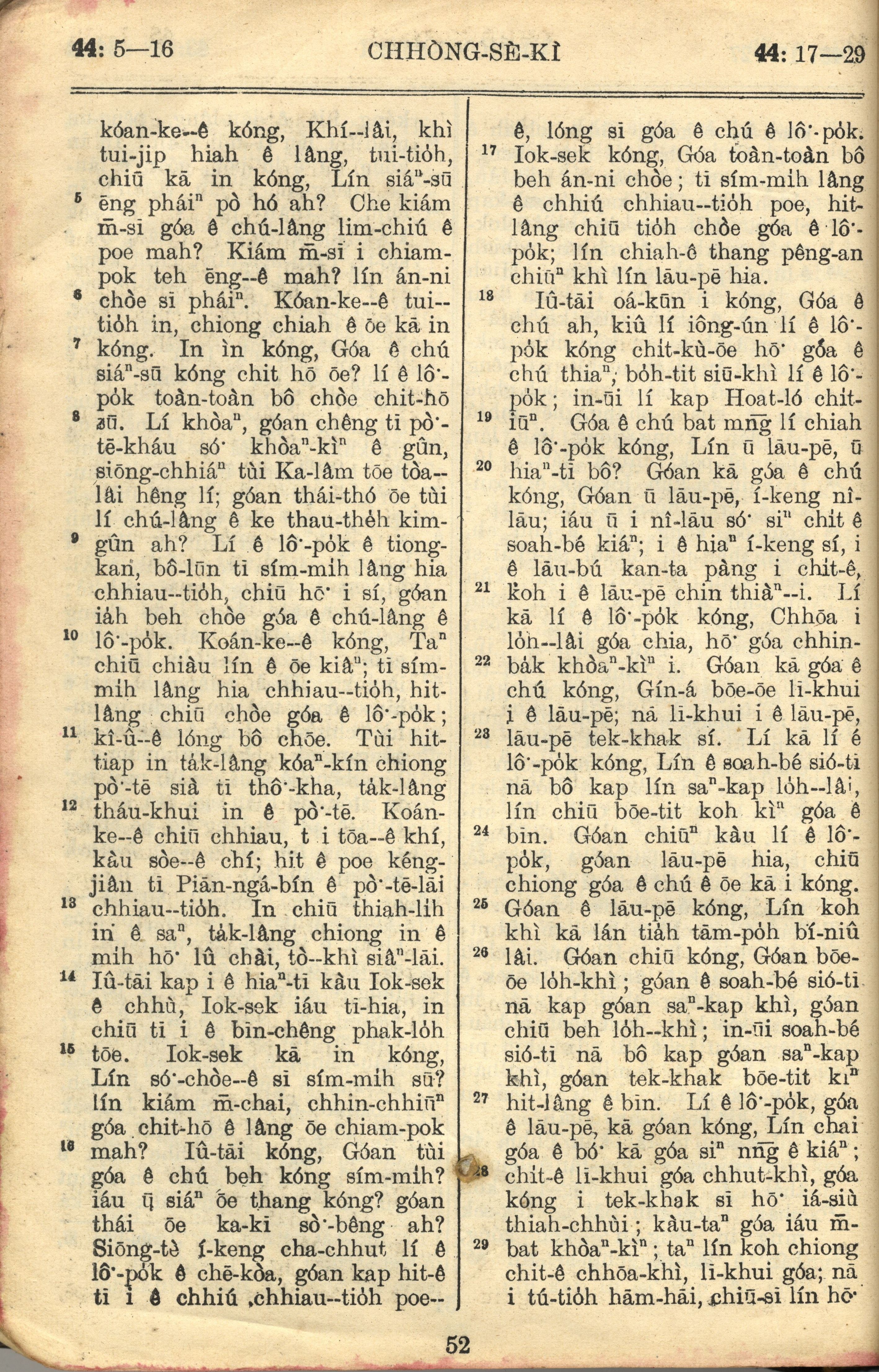 1957年巴克禮全羅台語聖經串珠版 創世記 44 章 5 節到 44 章 29 節