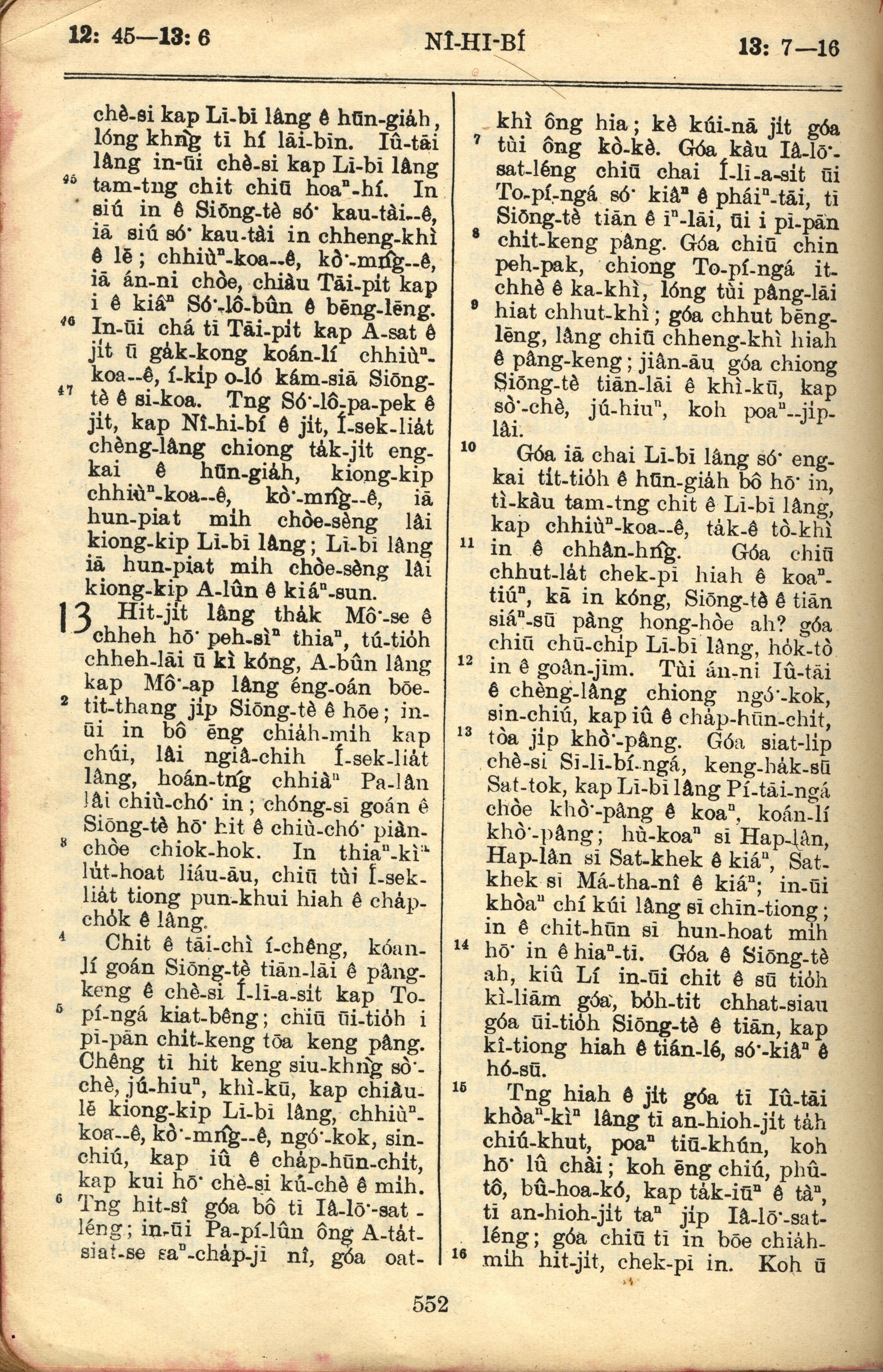 1957年巴克禮全羅台語聖經串珠版 尼希米記 12 章 45 節到 13 章 16 節