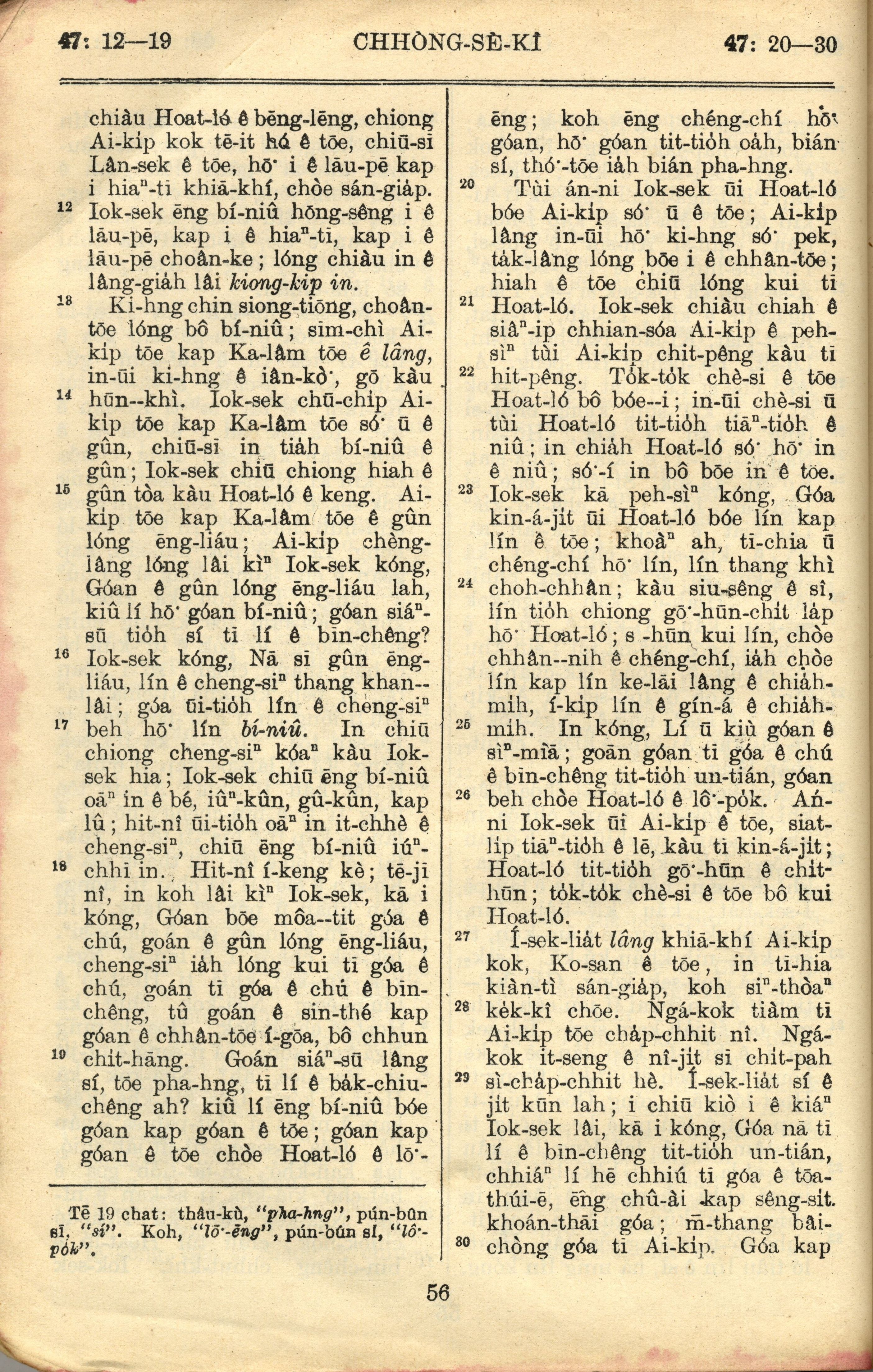 1957年巴克禮全羅台語聖經串珠版 創世記 47 章 12 節到 47 章 30 節