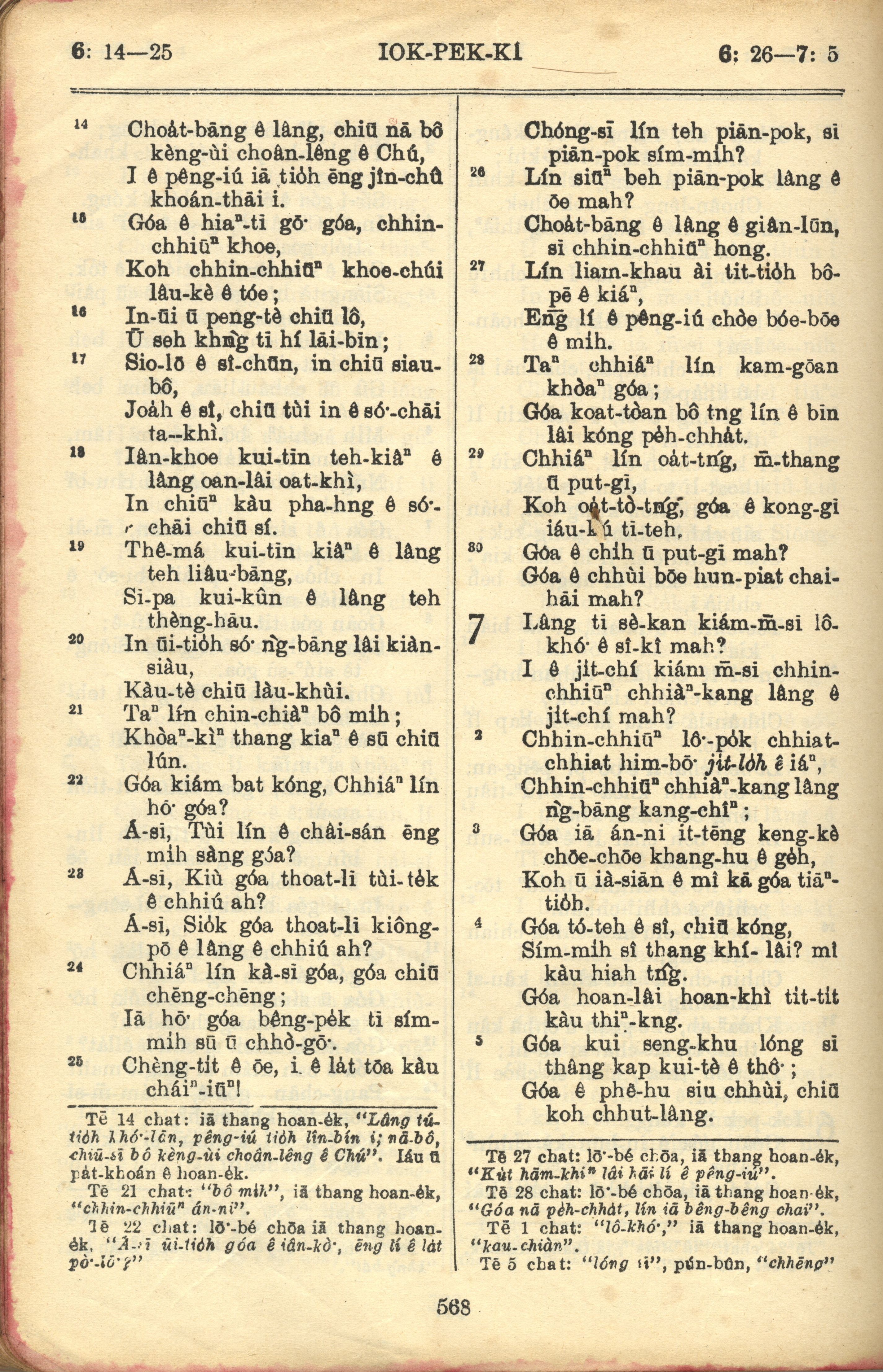 1957年巴克禮全羅台語聖經串珠版 約伯記 6 章 14 節到 7 章 5 節