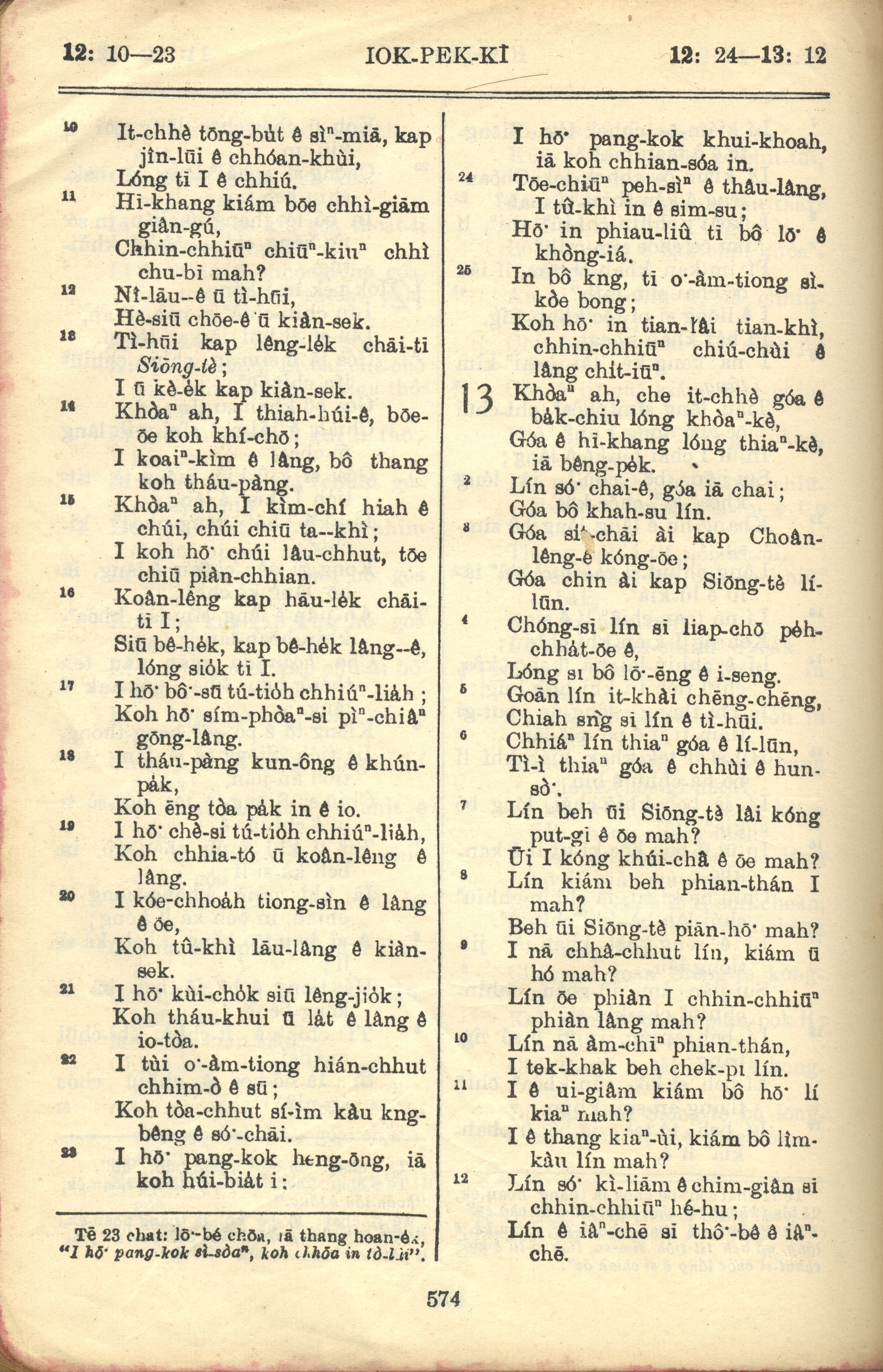 1957年巴克禮全羅台語聖經串珠版 約伯記 12 章 10 節到 13 章 12 節