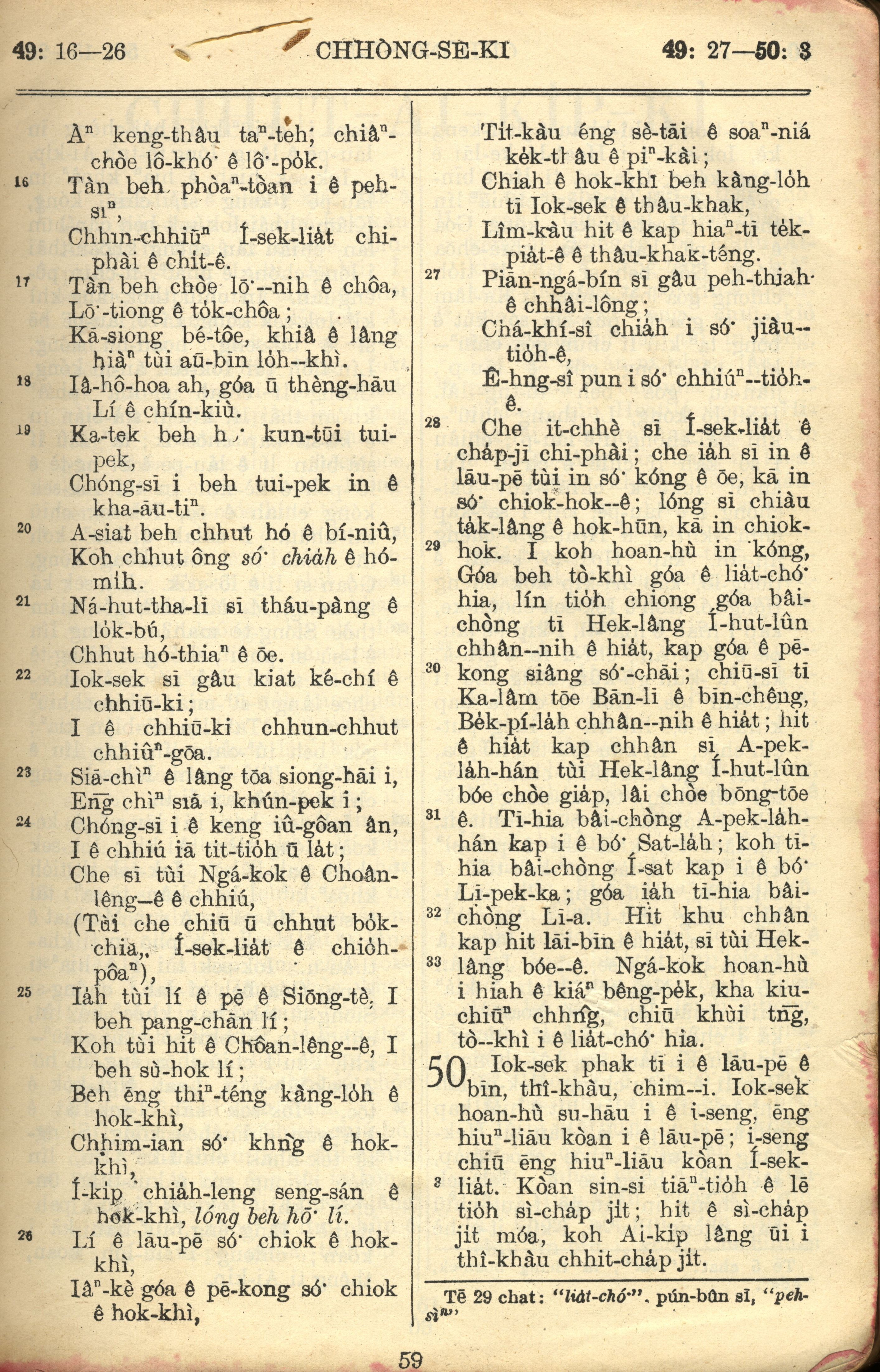 1957年巴克禮全羅台語聖經串珠版 創世記 49 章 16 節到 50 章 3 節