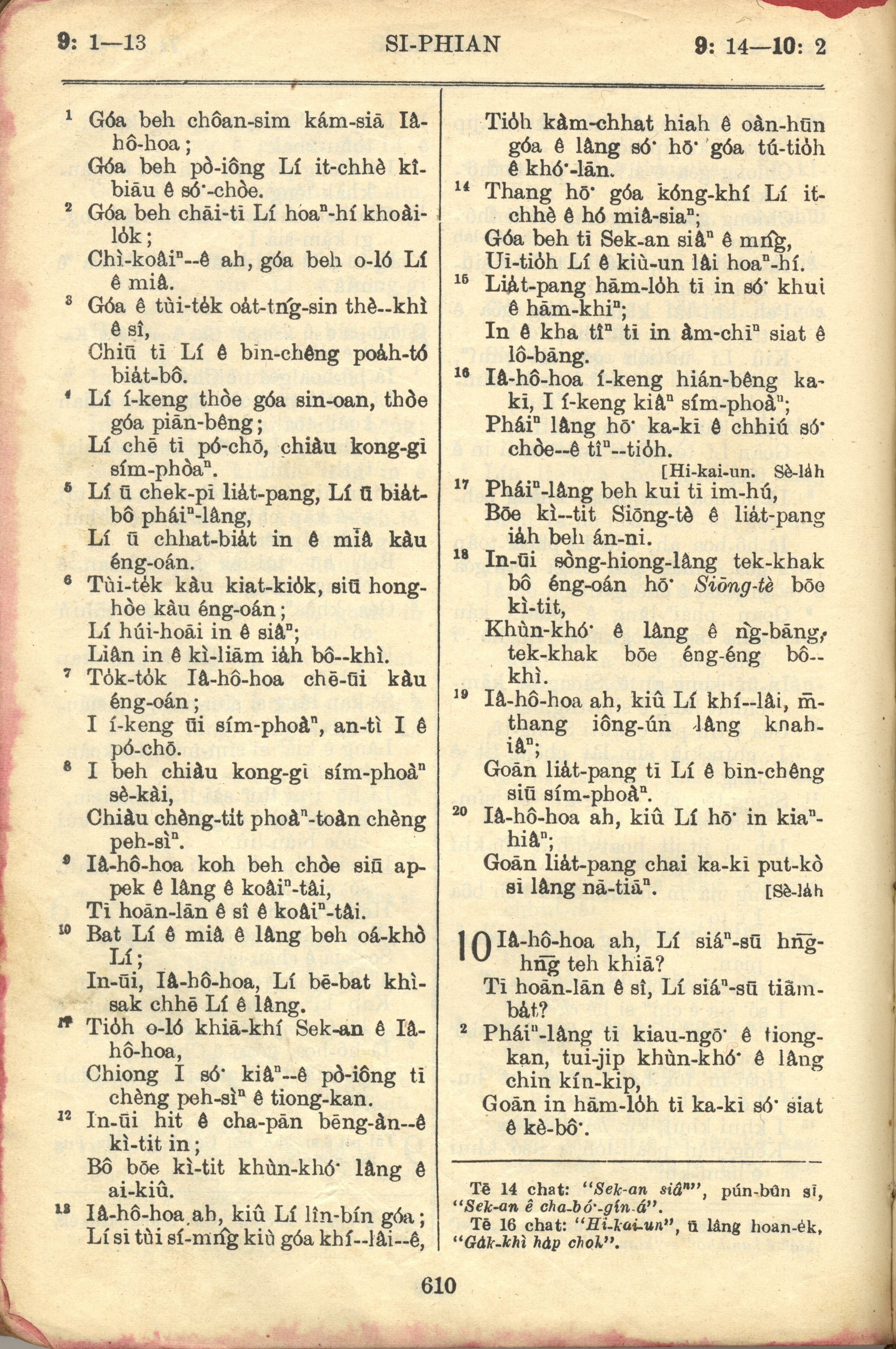 1957年巴克禮全羅台語聖經串珠版 詩篇 9 章 1 節到 10 章 2 節