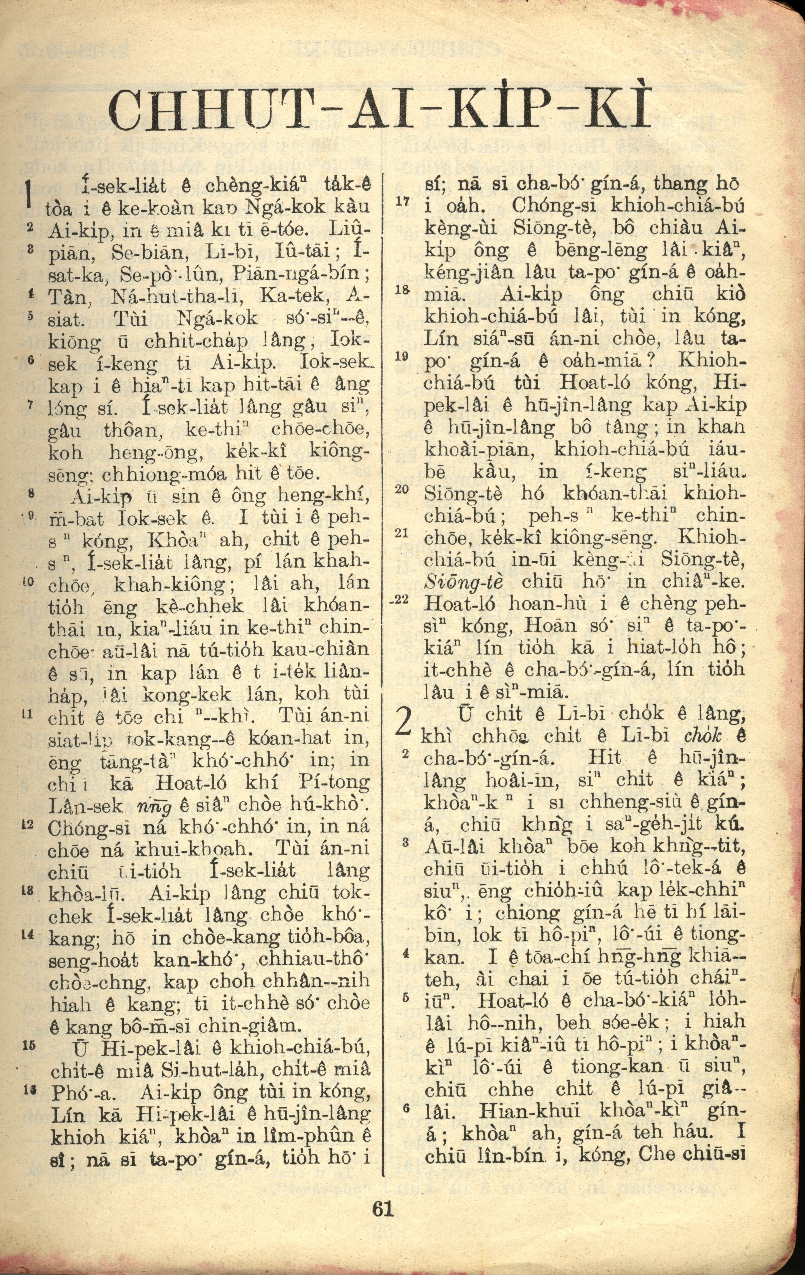 1957年巴克禮全羅台語聖經串珠版 出埃及記 1 章 1 節到 2 章 6 節