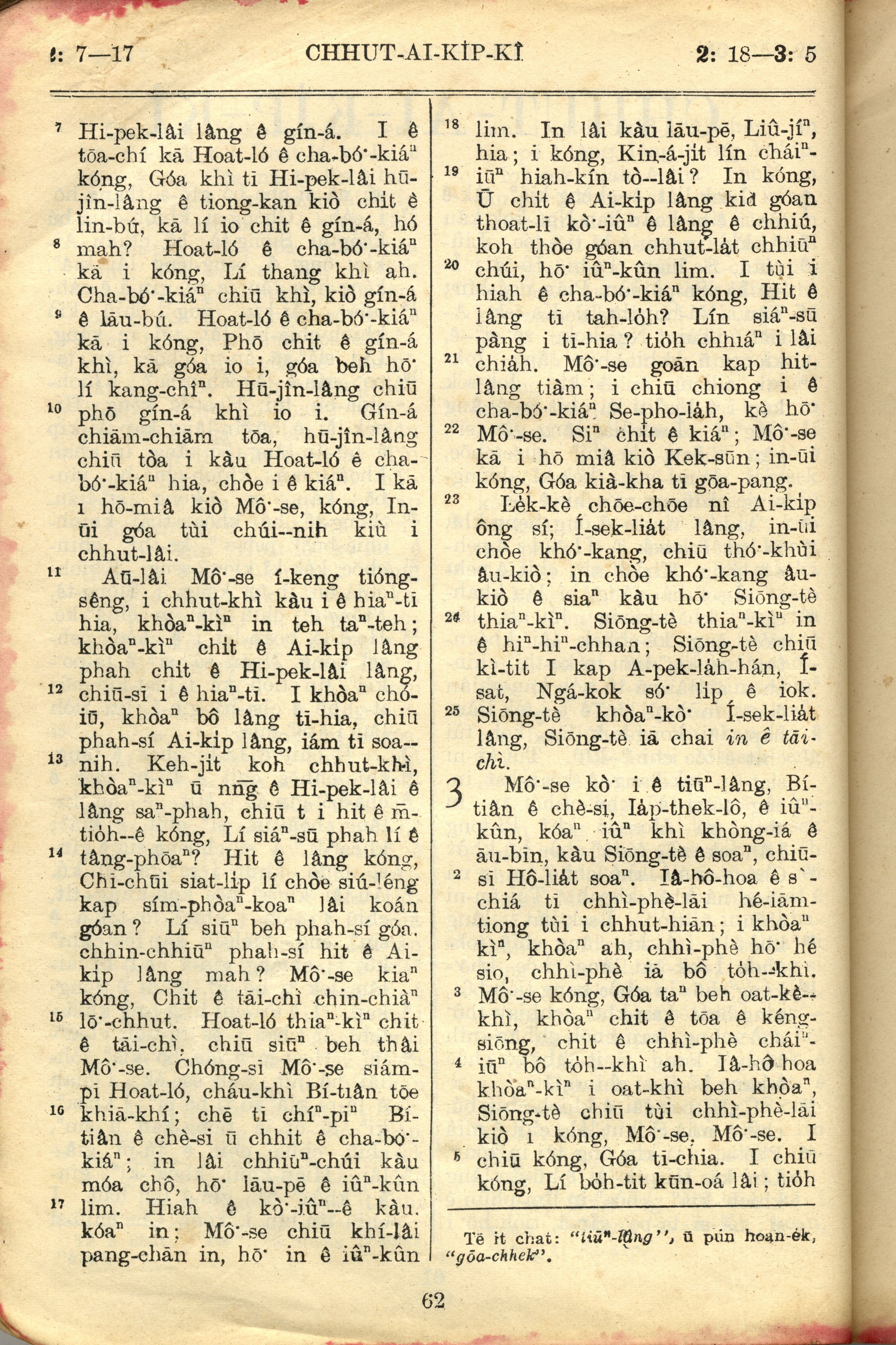 1957年巴克禮全羅台語聖經串珠版 出埃及記 2 章 7 節到 3 章 5 節