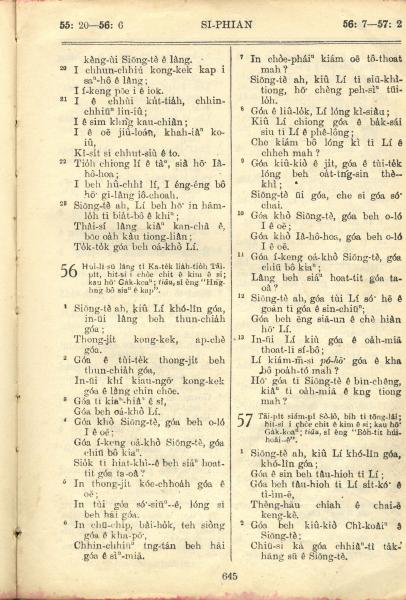1957年巴克禮全羅台語聖經串珠版 詩篇 55 章 20 節到 57 章 2 節