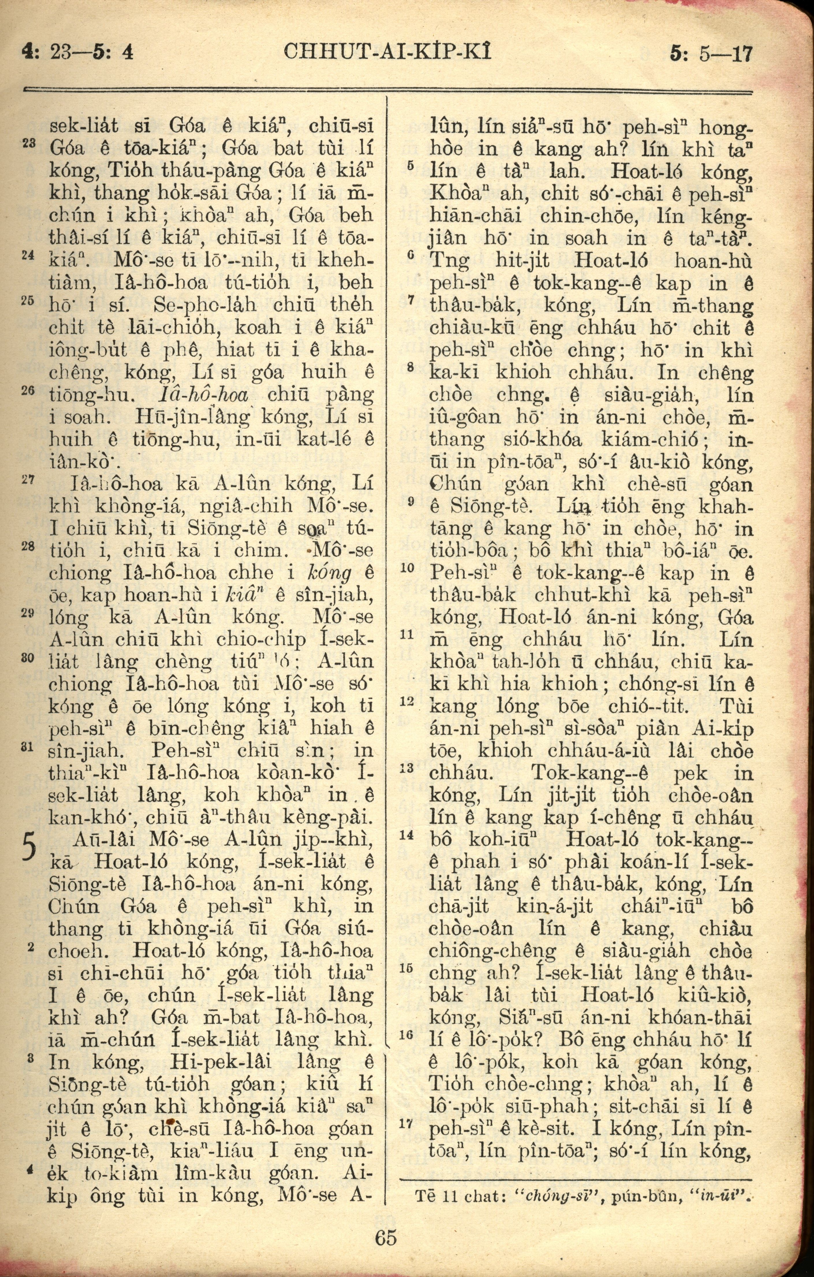 1957年巴克禮全羅台語聖經串珠版 出埃及記 4 章 23 節到 5 章 17 節