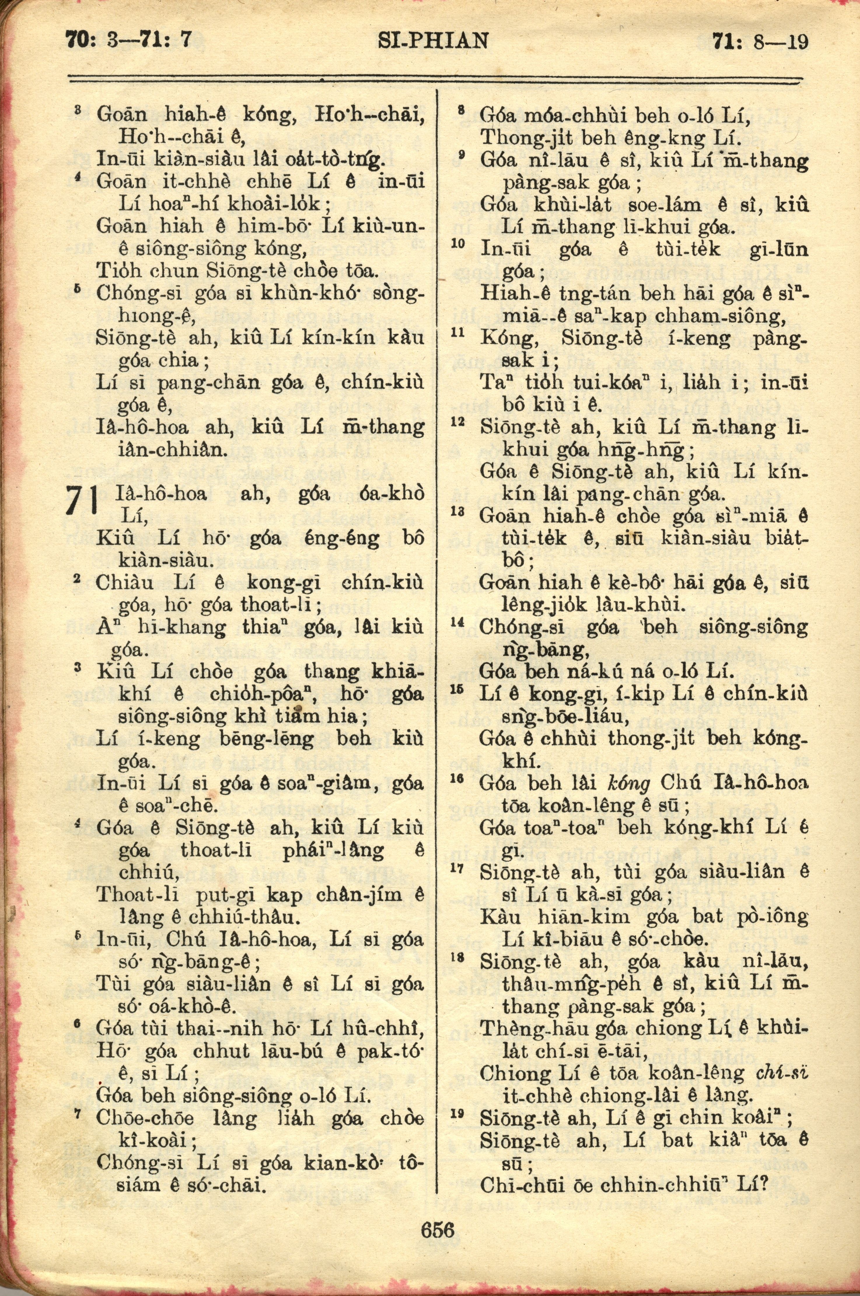 1957年巴克禮全羅台語聖經串珠版 詩篇 70 章 3 節到 71 章 19 節