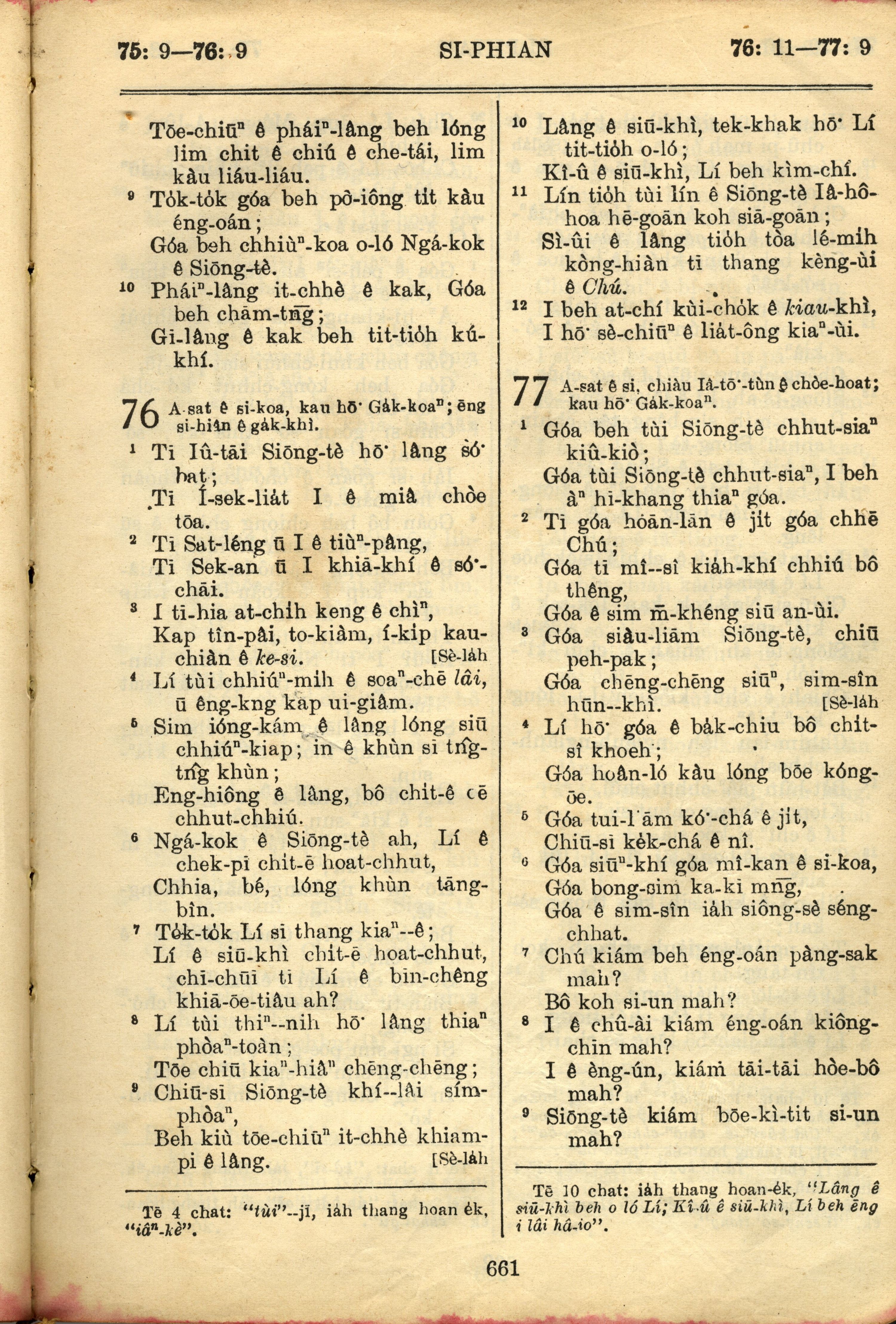 1957年巴克禮全羅台語聖經串珠版 詩篇 75 章 9 節到 77 章 9 節