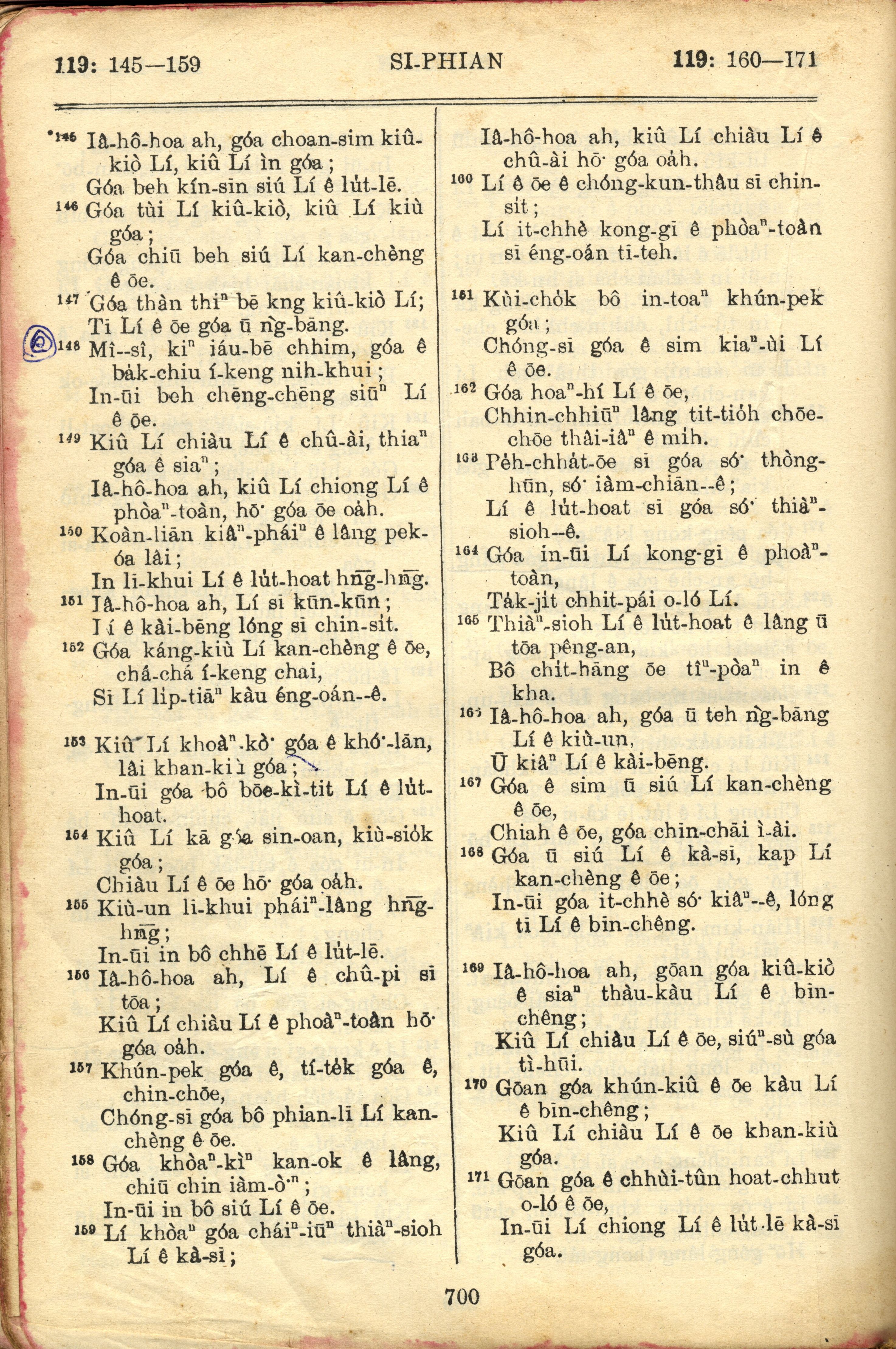 1957年巴克禮全羅台語聖經串珠版 詩篇 119 章 145 節到 119 章 171 節
