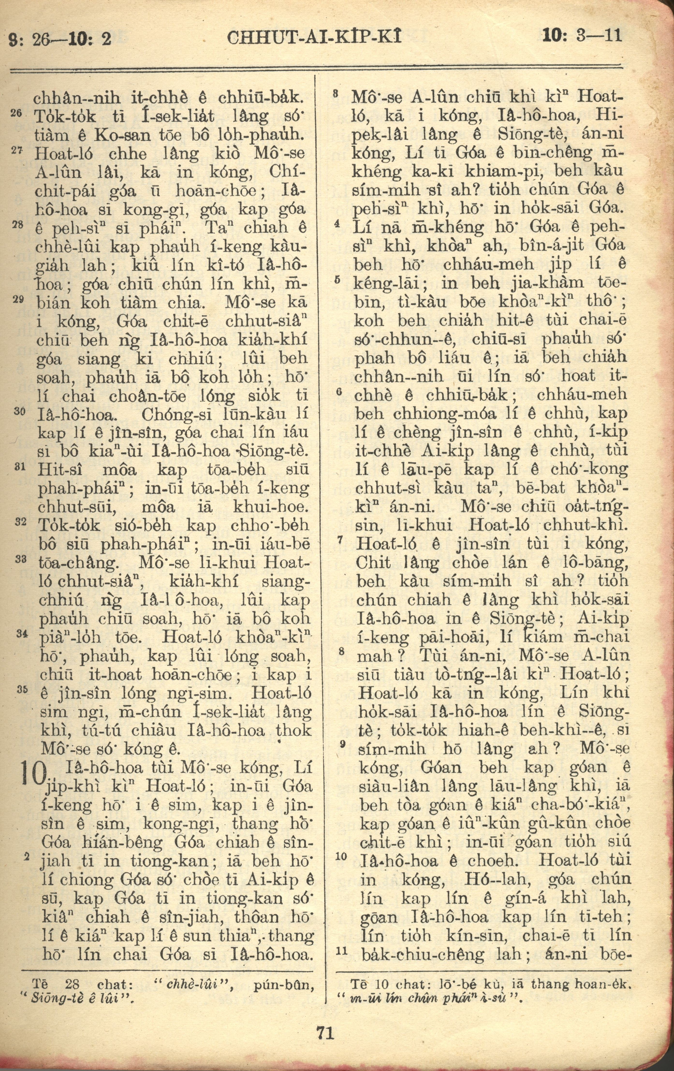 1957年巴克禮全羅台語聖經串珠版 出埃及記 9 章 26 節到 10 章 11 節