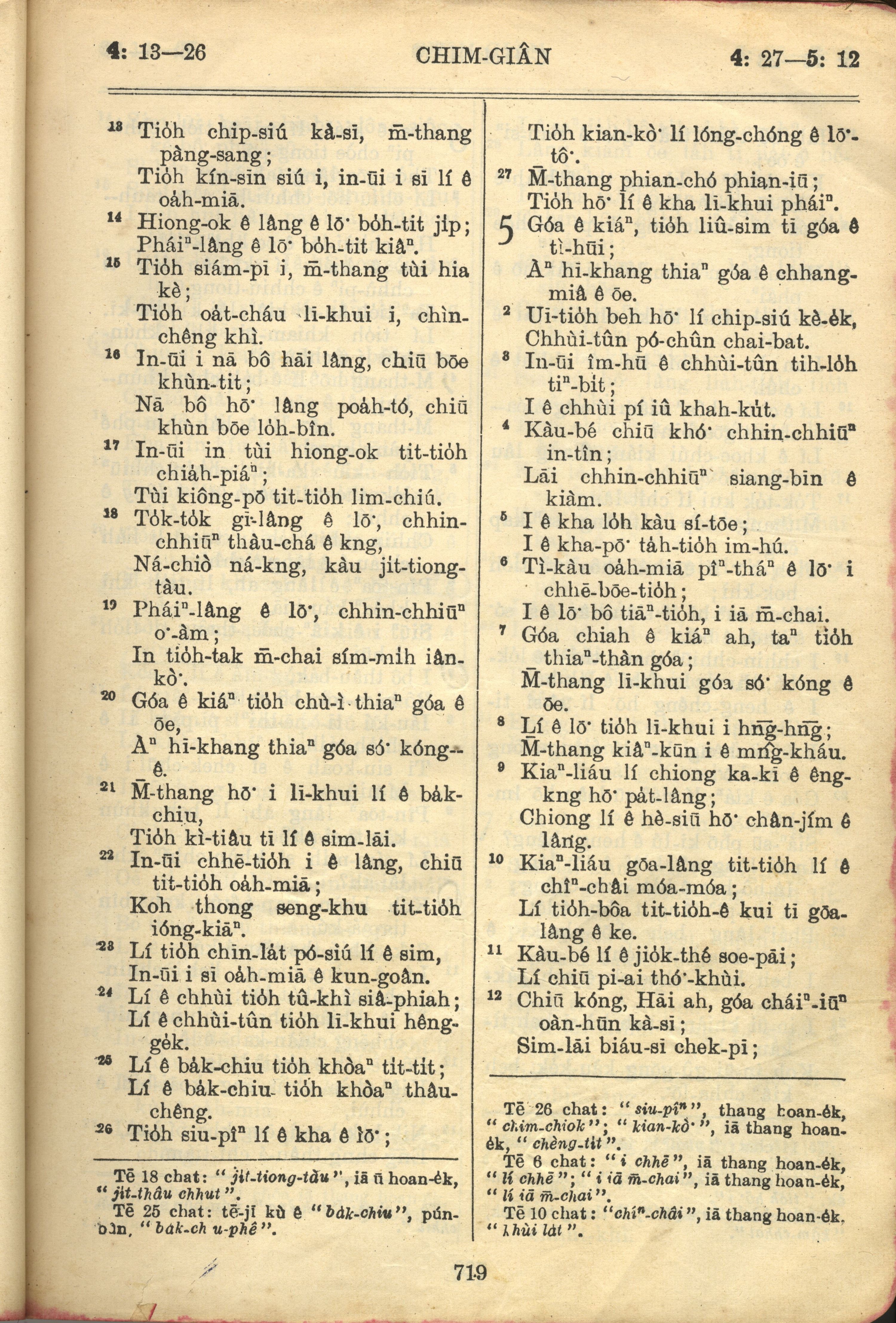 1957年巴克禮全羅台語聖經串珠版 箴言 4 章 13 節到 5 章 12 節