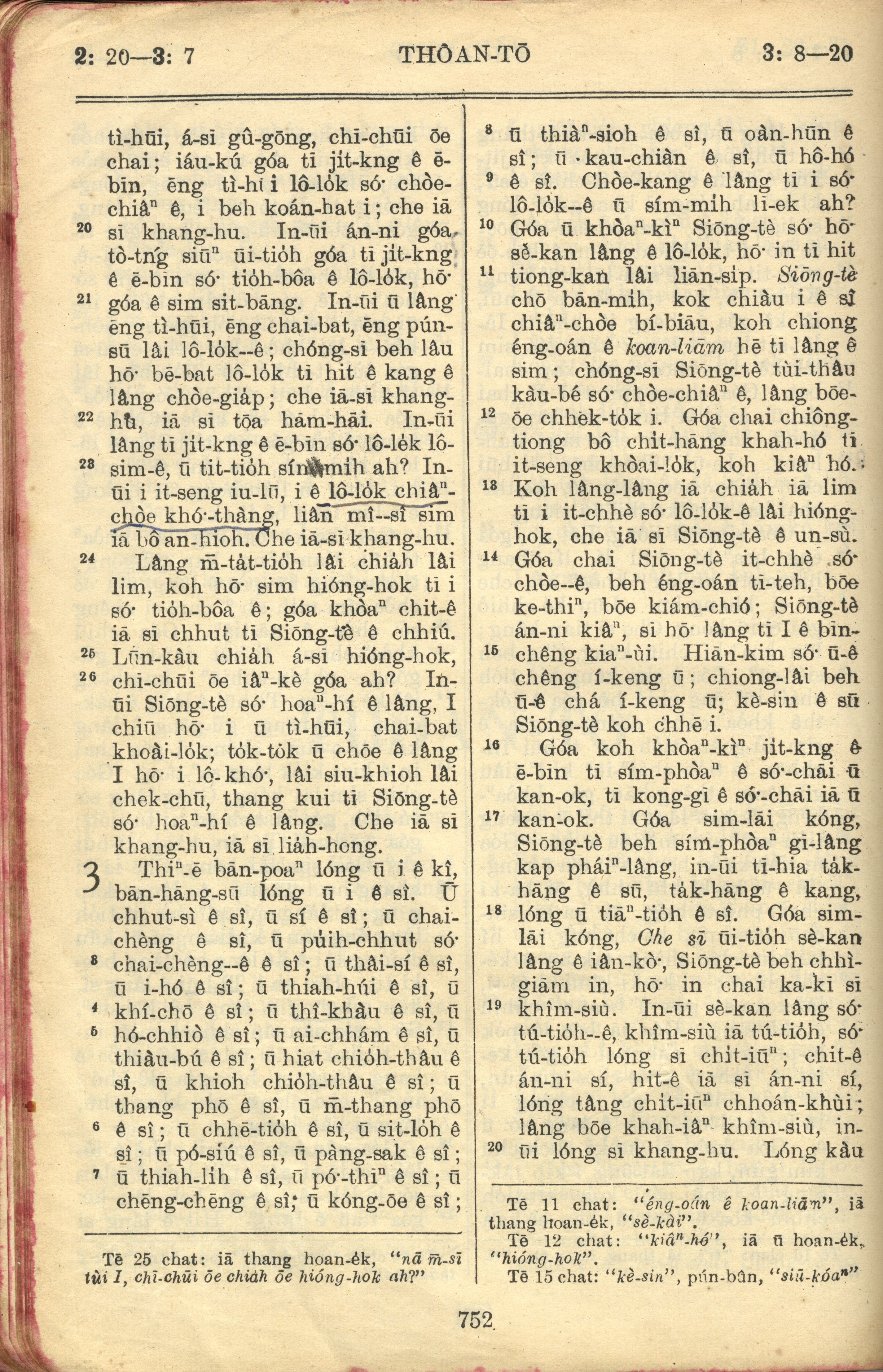 1957年巴克禮全羅台語聖經串珠版 傳道書 2 章 20 節到 3 章 20 節