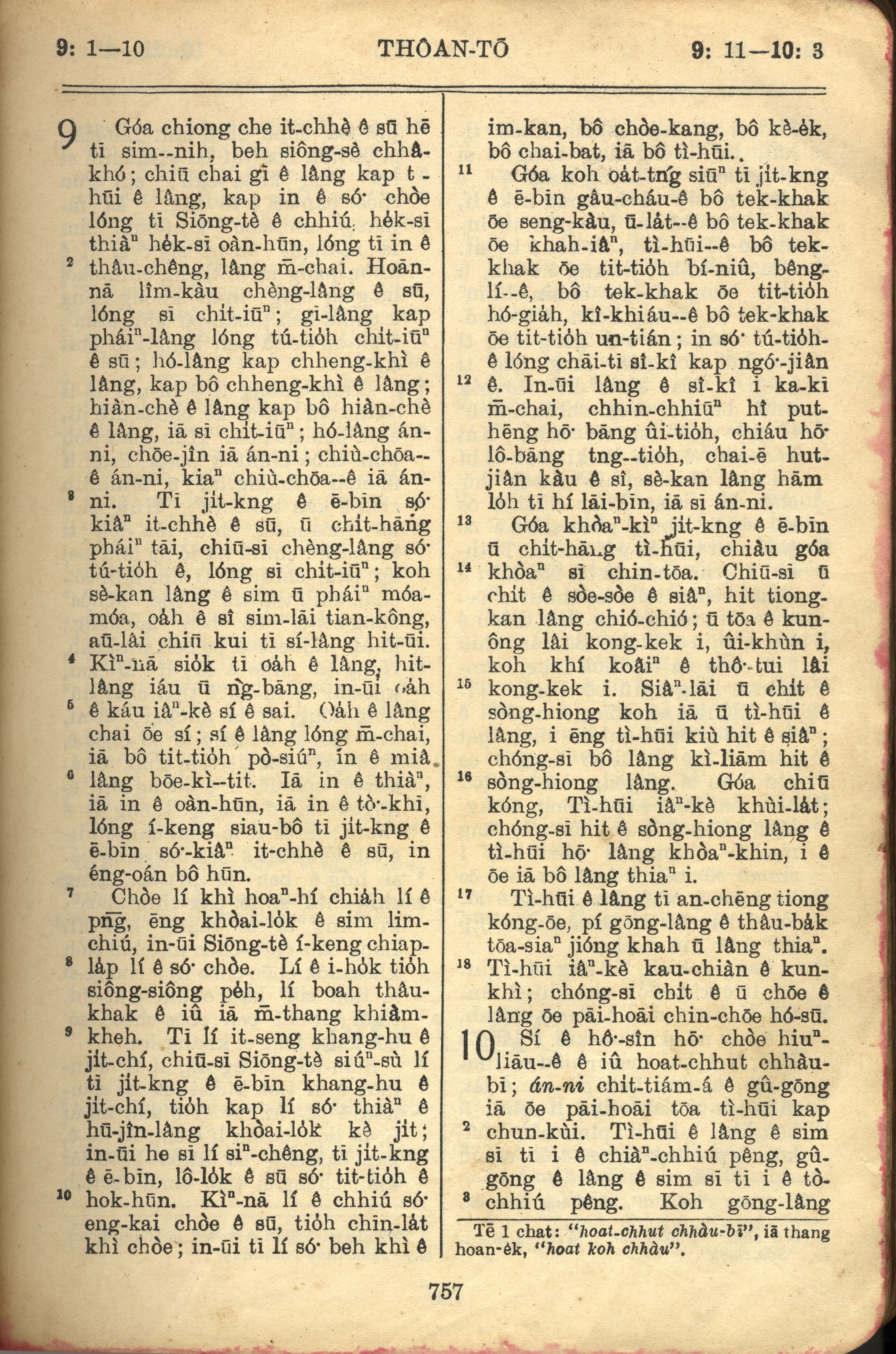 1957年巴克禮全羅台語聖經串珠版 傳道書 9 章 1 節到 10 章 3 節
